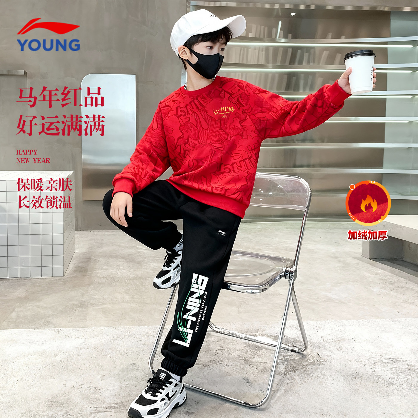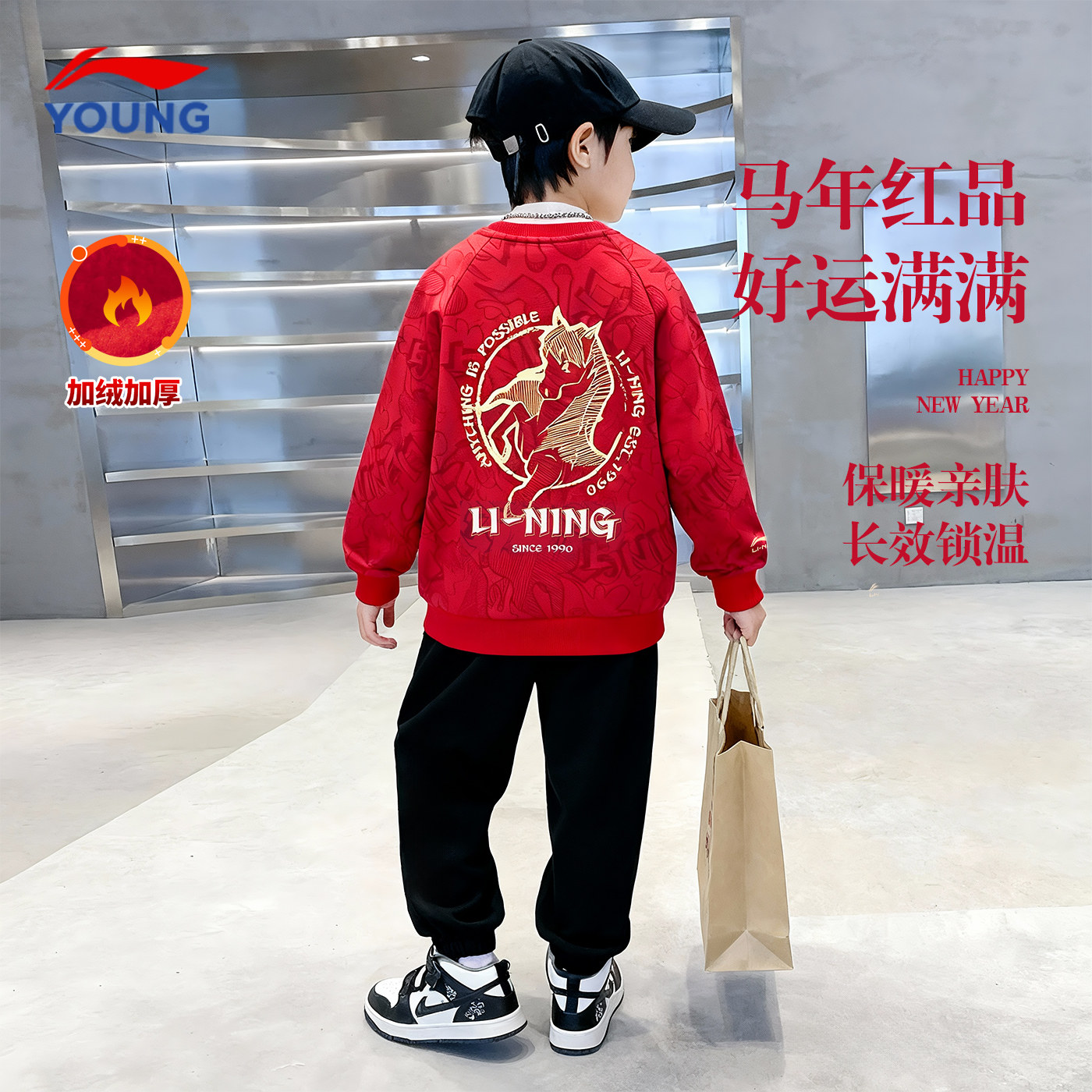 李宁儿童新年卫衣卫裤套装2026马年男女大童运动套装本命年新年服