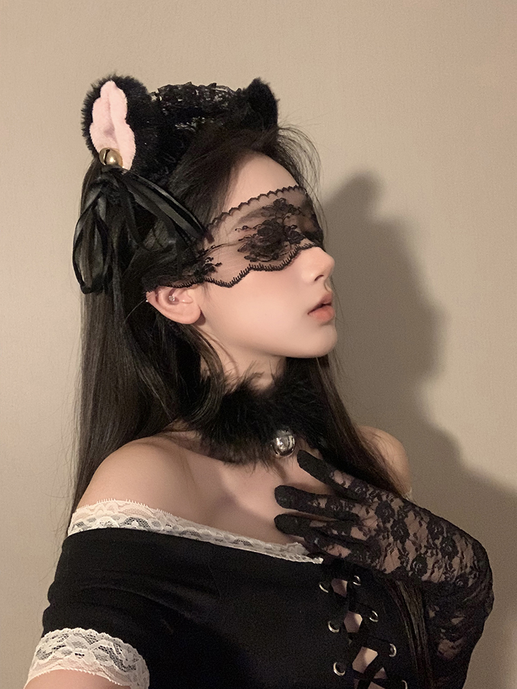 BXA罚站小猫~万圣节蕾丝猫耳套装猫耳朵发箍纯欲兽耳装扮头箍头饰