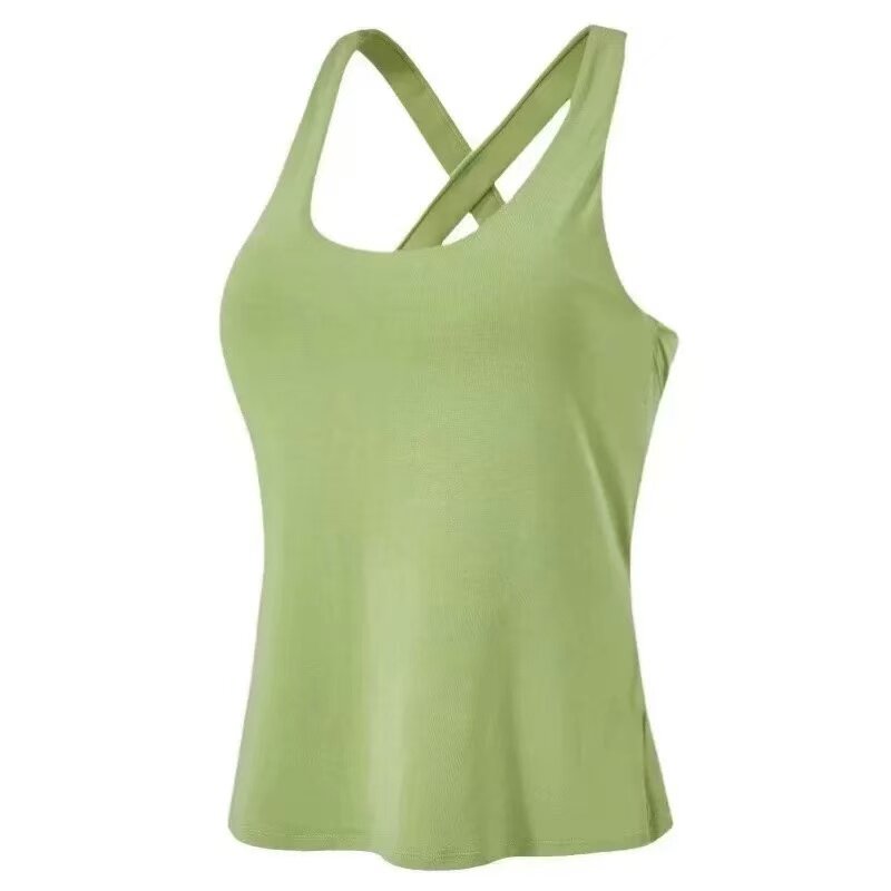 含胸垫假两件运动内衣女跑步训练健身背心交叉美背瑜伽服无袖T恤