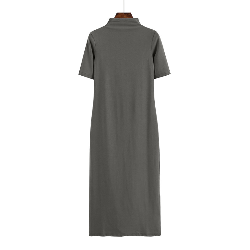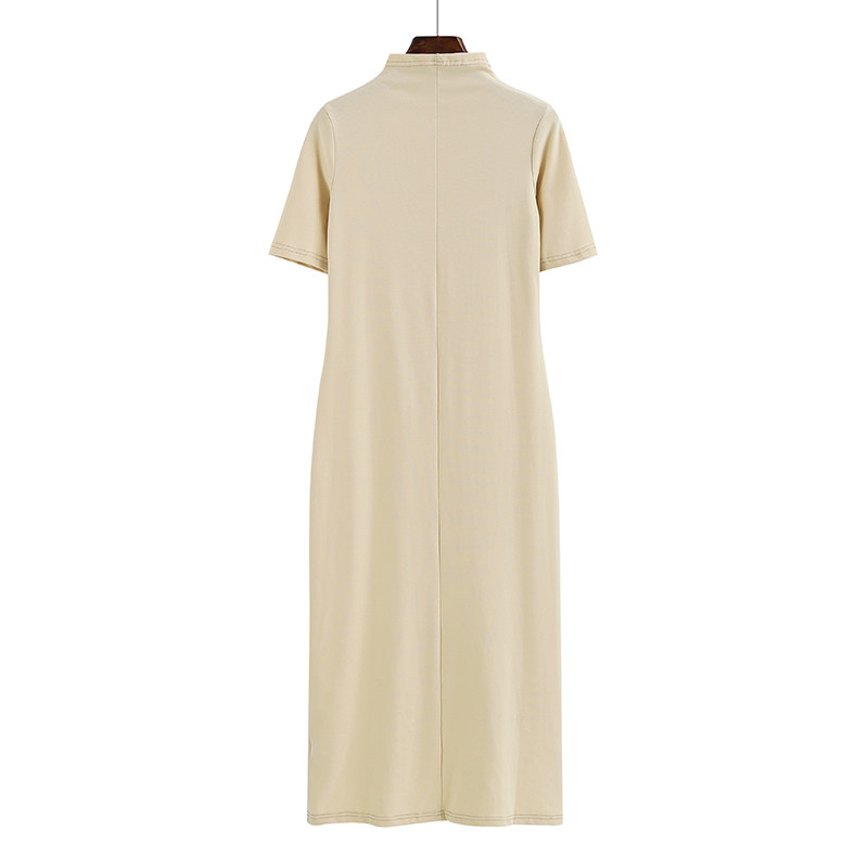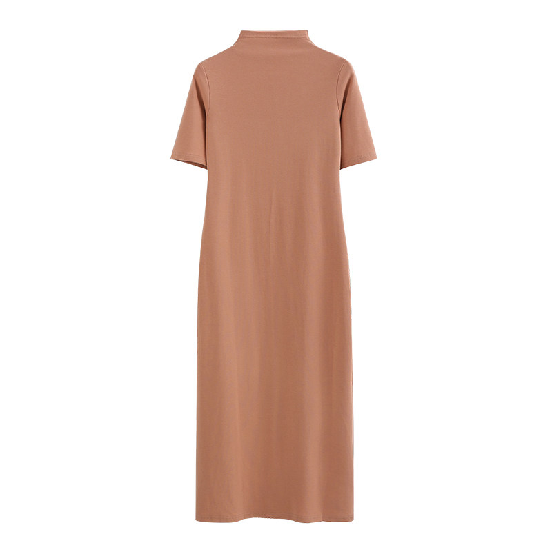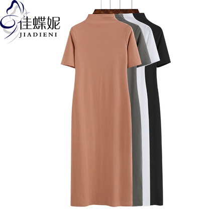 春夏新款韩版半高领加长款纯棉短袖女纯色修身显瘦打底连衣裙体恤