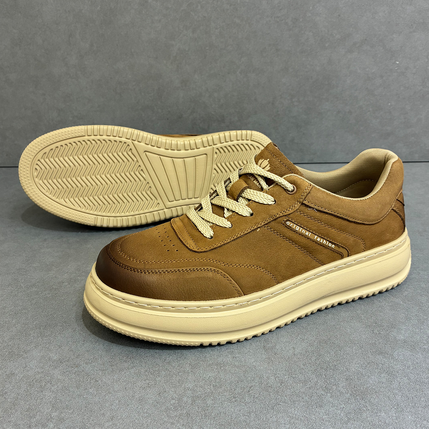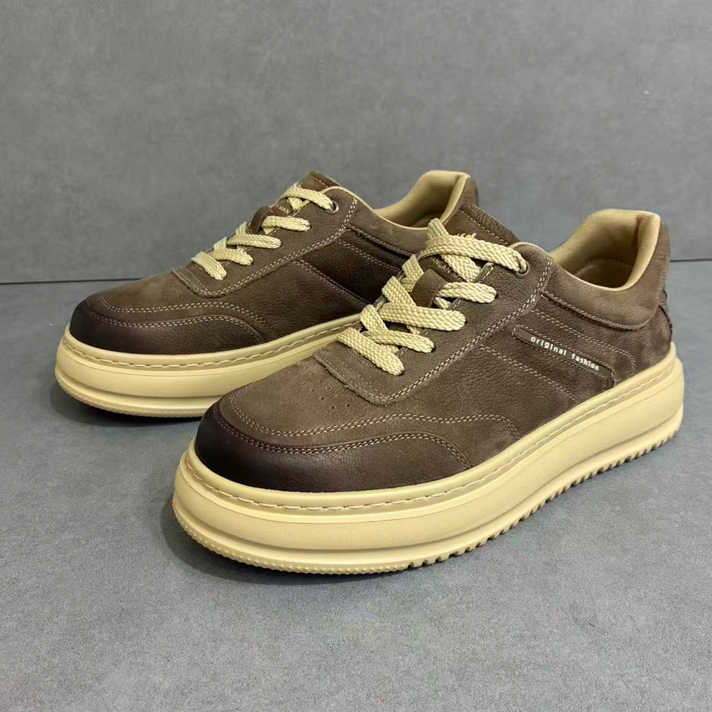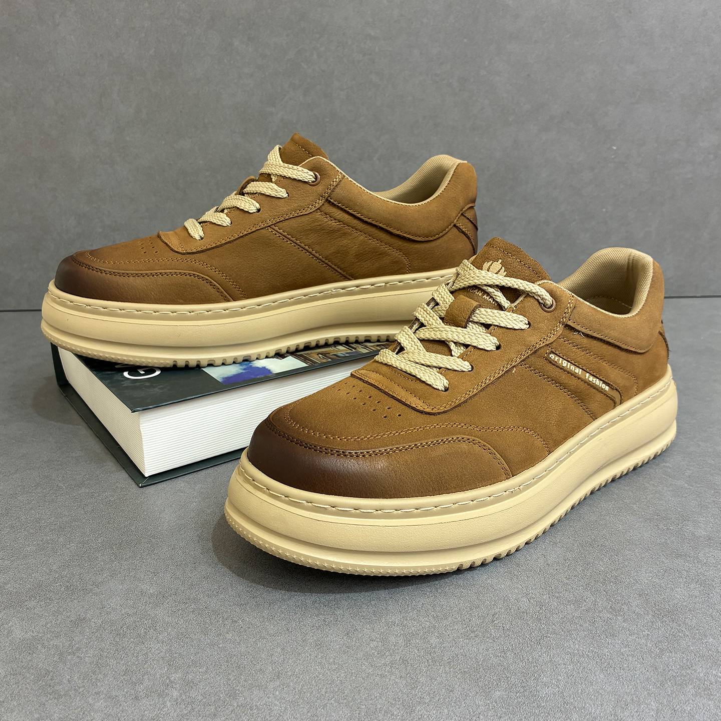 2025秋季新款真皮男鞋牛皮百搭休闲鞋男厚底英伦风板鞋运动皮鞋子