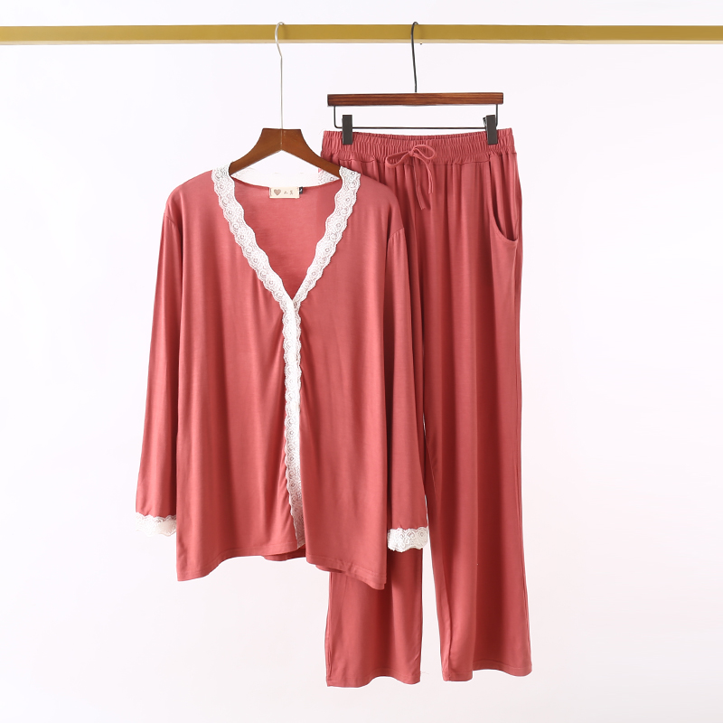 莫代尔睡衣套装女2025春夏纯棉长袖上衣大码休闲宽松家居服套装
