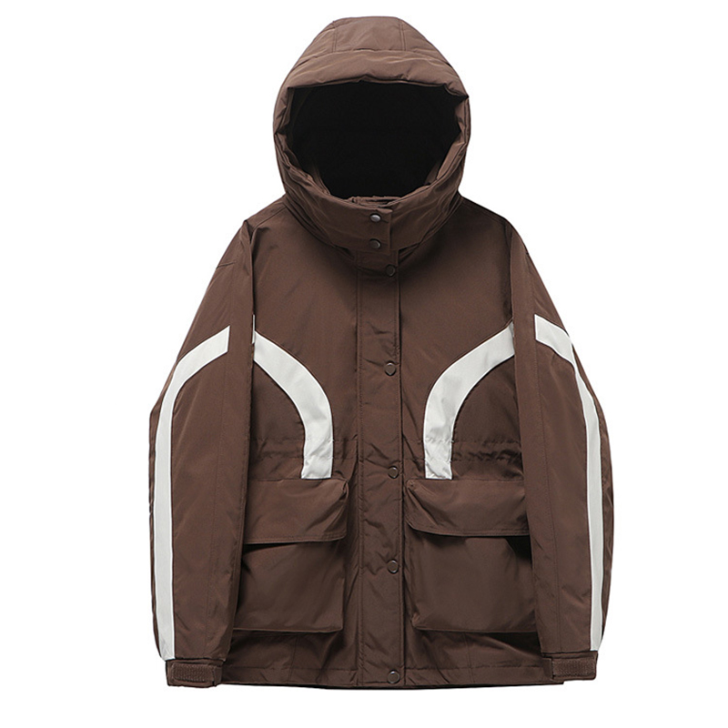 大码韩系穿搭撞色工装羽绒服胖mm冬季休闲加厚白鸭绒冲锋衣派克服