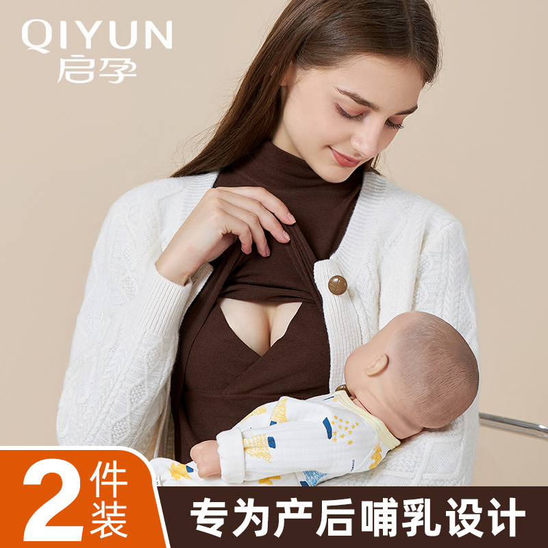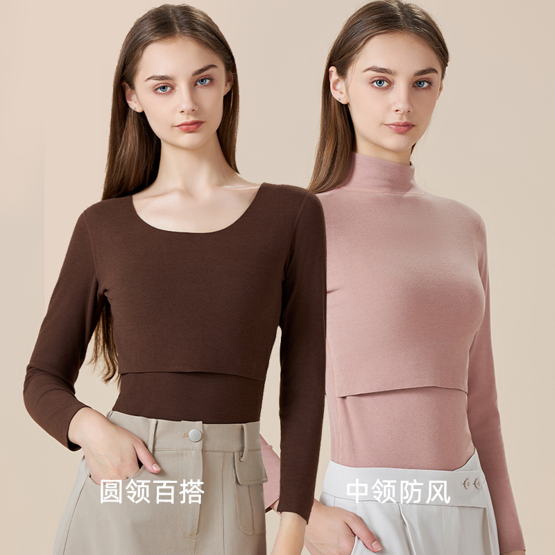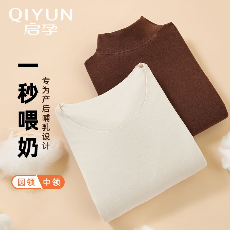 哺乳秋衣上衣单件产后月子服打底喂奶衣女大码秋冬季加绒保暖内衣