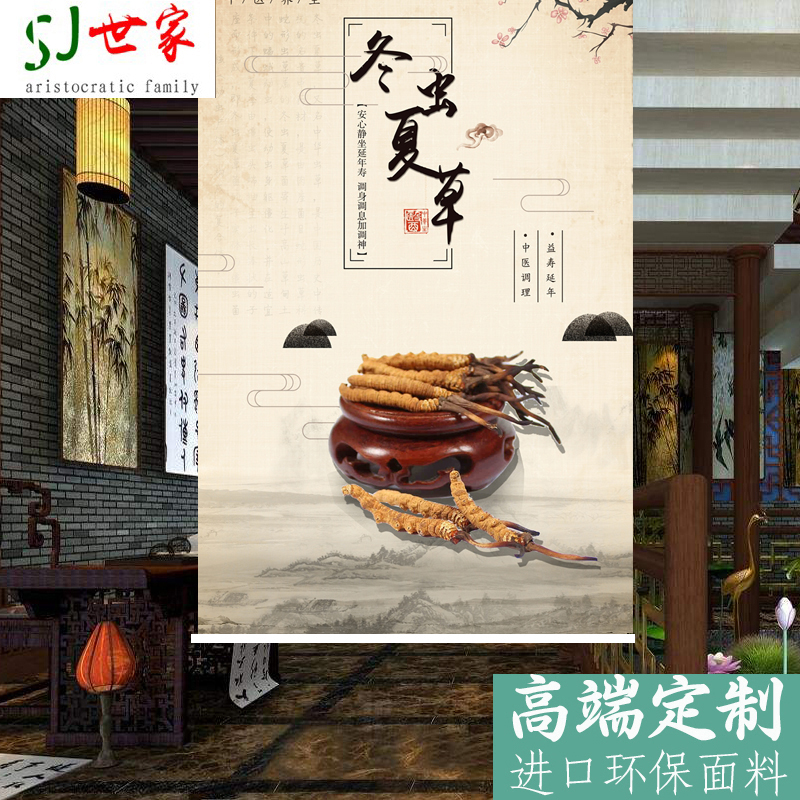 定做药店中医养生中药调理图案窗帘卷帘广告全遮光遮阳拉珠升降