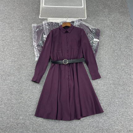 外贸欧美俄国单 跑单款单排包扣长袖系带大码连衣裙