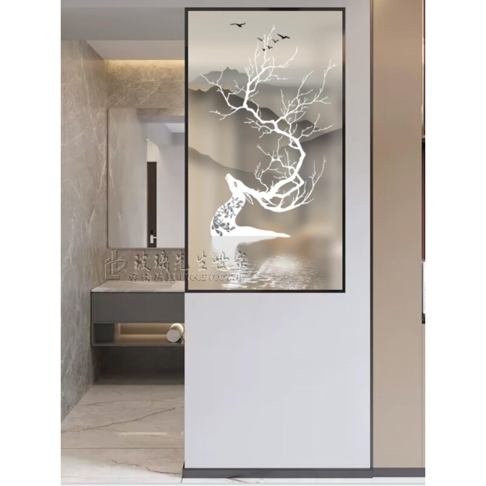 现代轻奢艺术玻璃屏风半墙隔断客厅入户遮挡玄关装饰卧室家装简约