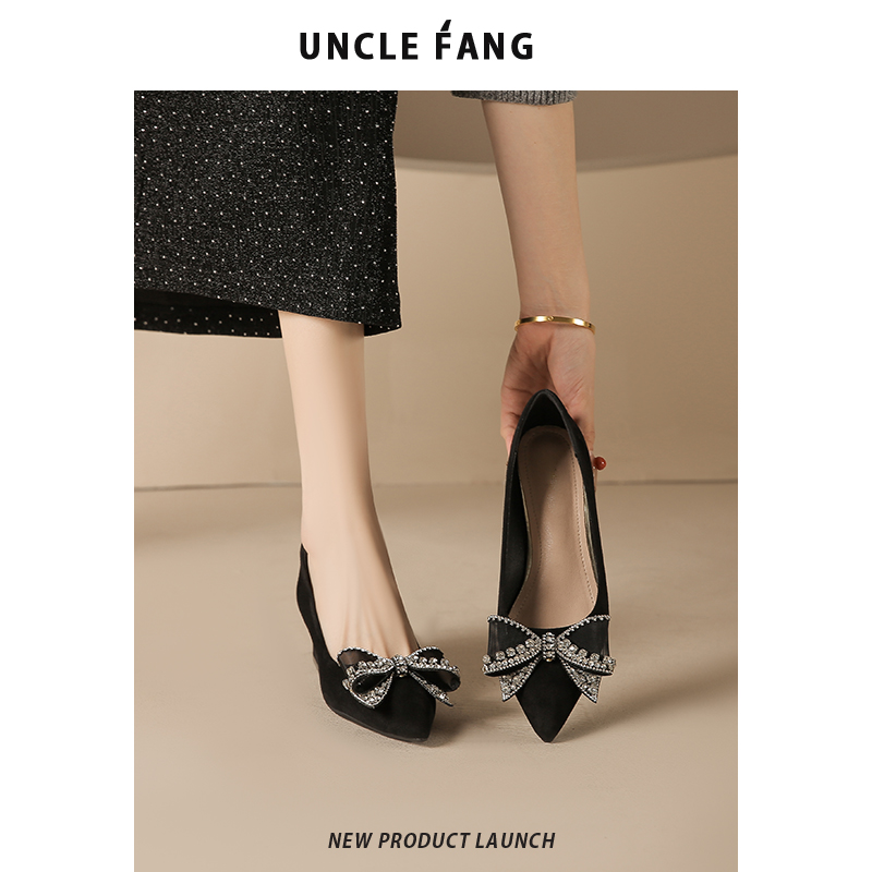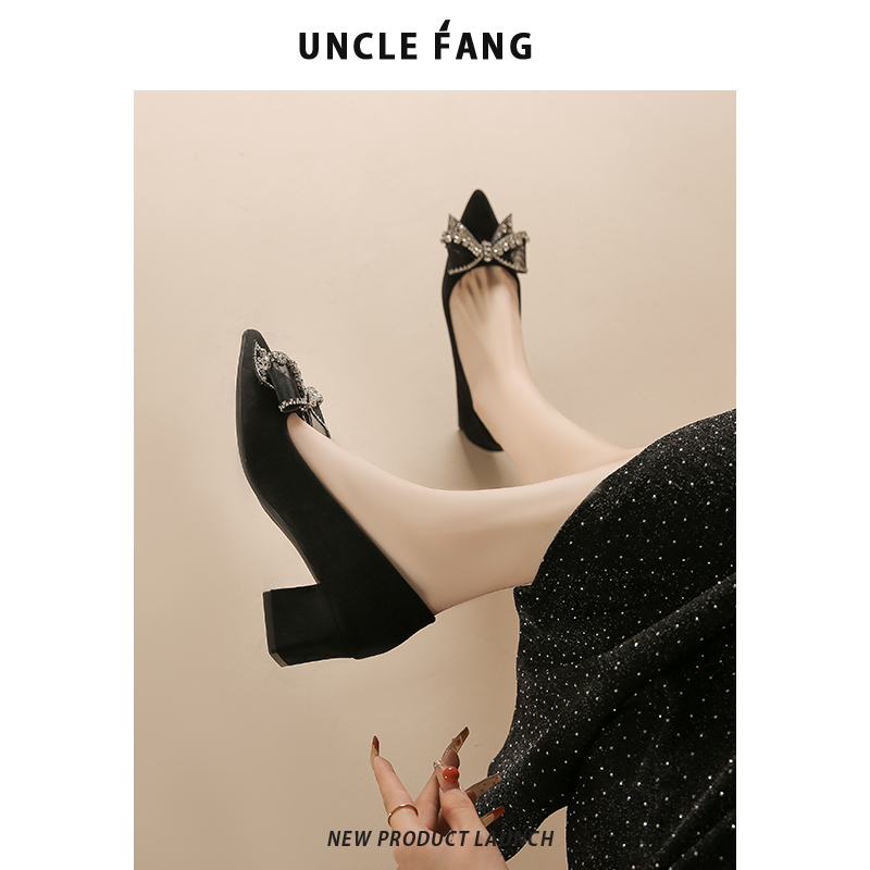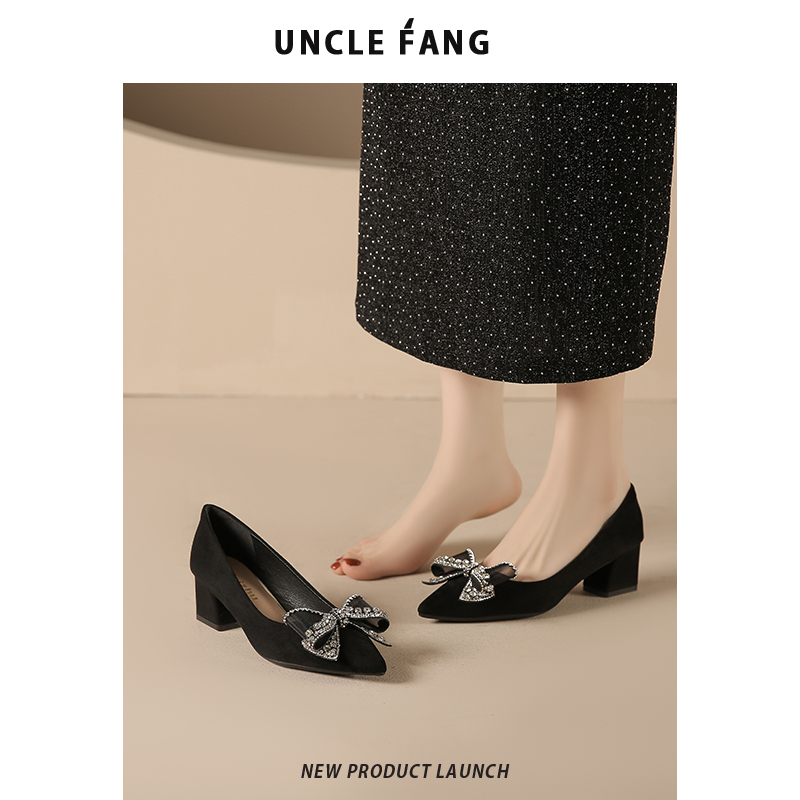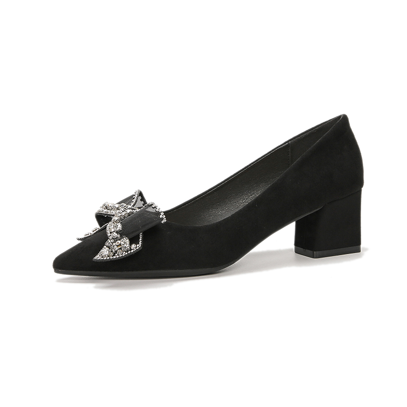 黑色高跟鞋女粗跟单鞋2025新款尖头法式气质职业工作鞋不累脚女鞋