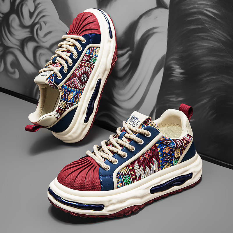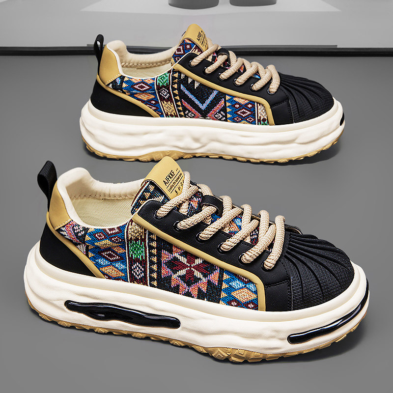 欧洲站男鞋冬季学生运动厚底板鞋休闲增高小众印花贝壳头黑色潮鞋