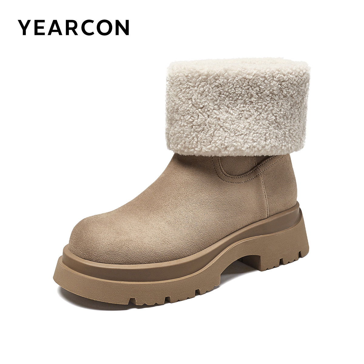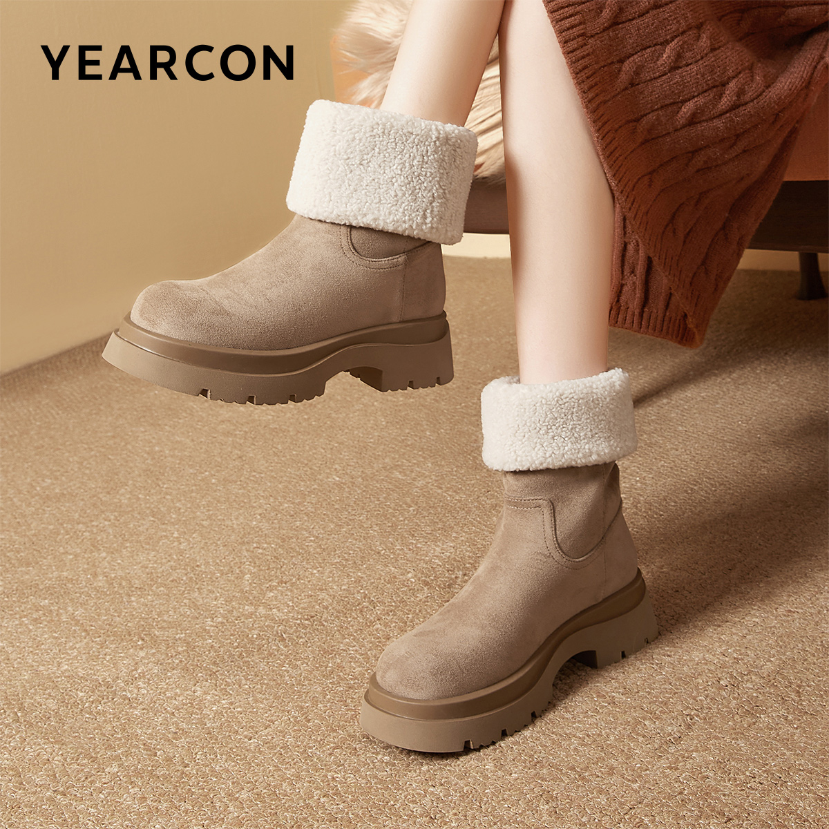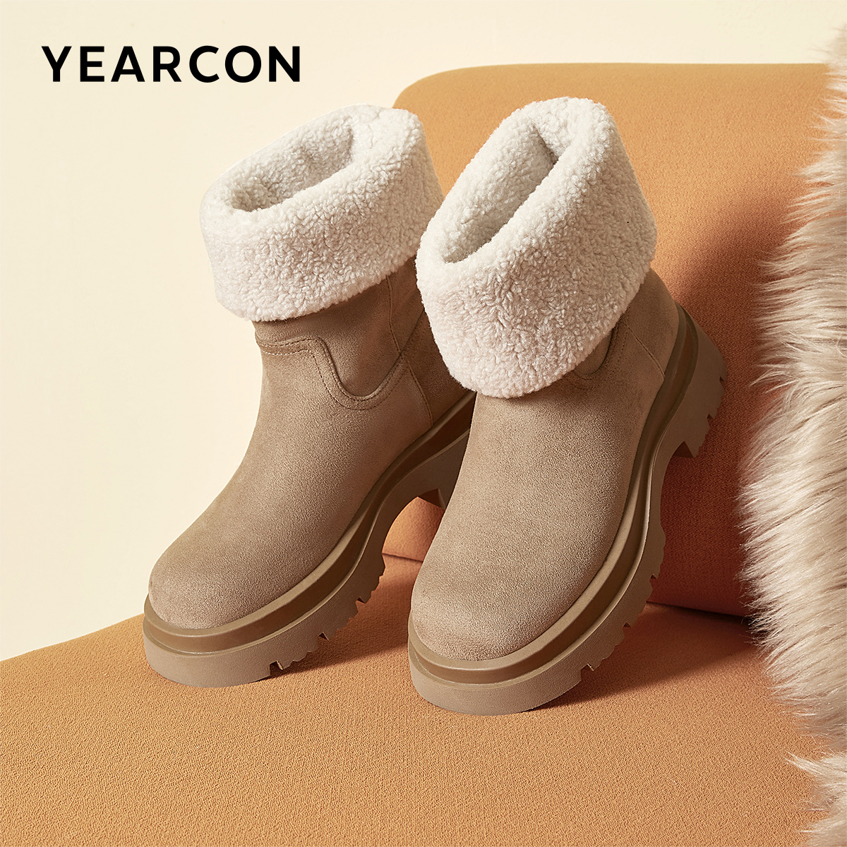 意尔康女鞋冬季毛毛鞋加绒保暖棉鞋粗跟中筒雪地靴户外休闲女士