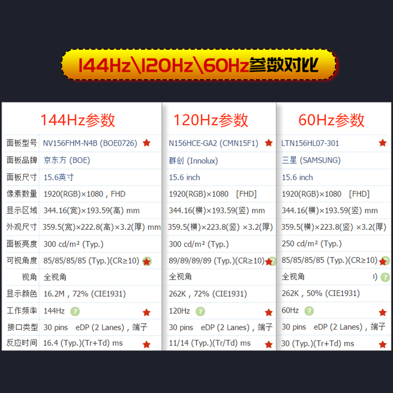 LP156WFG-SPF2 B2 NV156FHM-N4G 笔记本15.6寸 144hz电竞显示屏幕