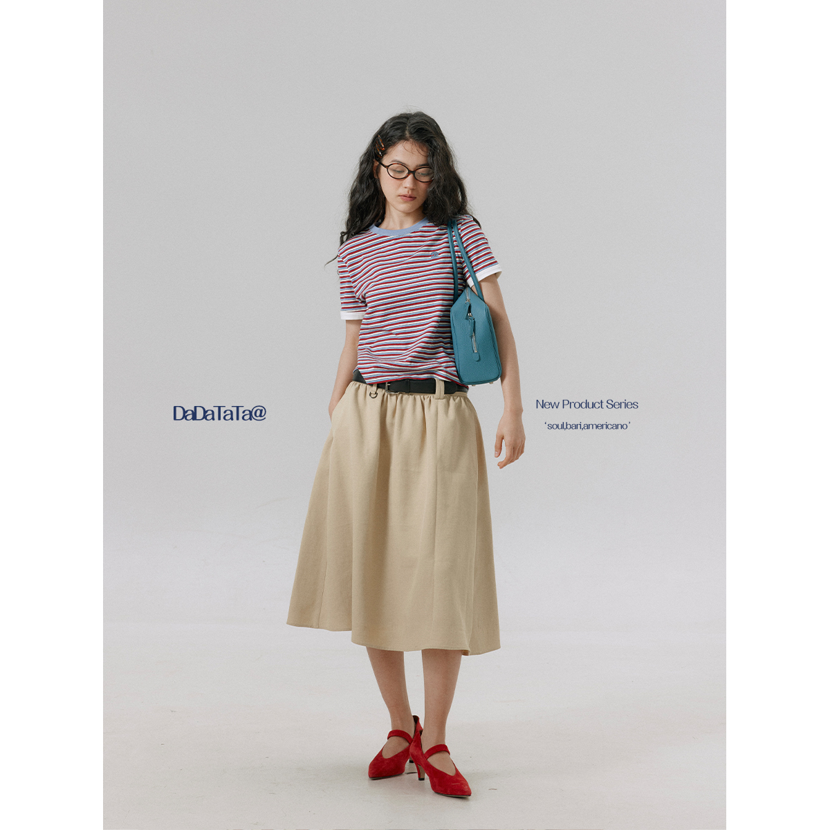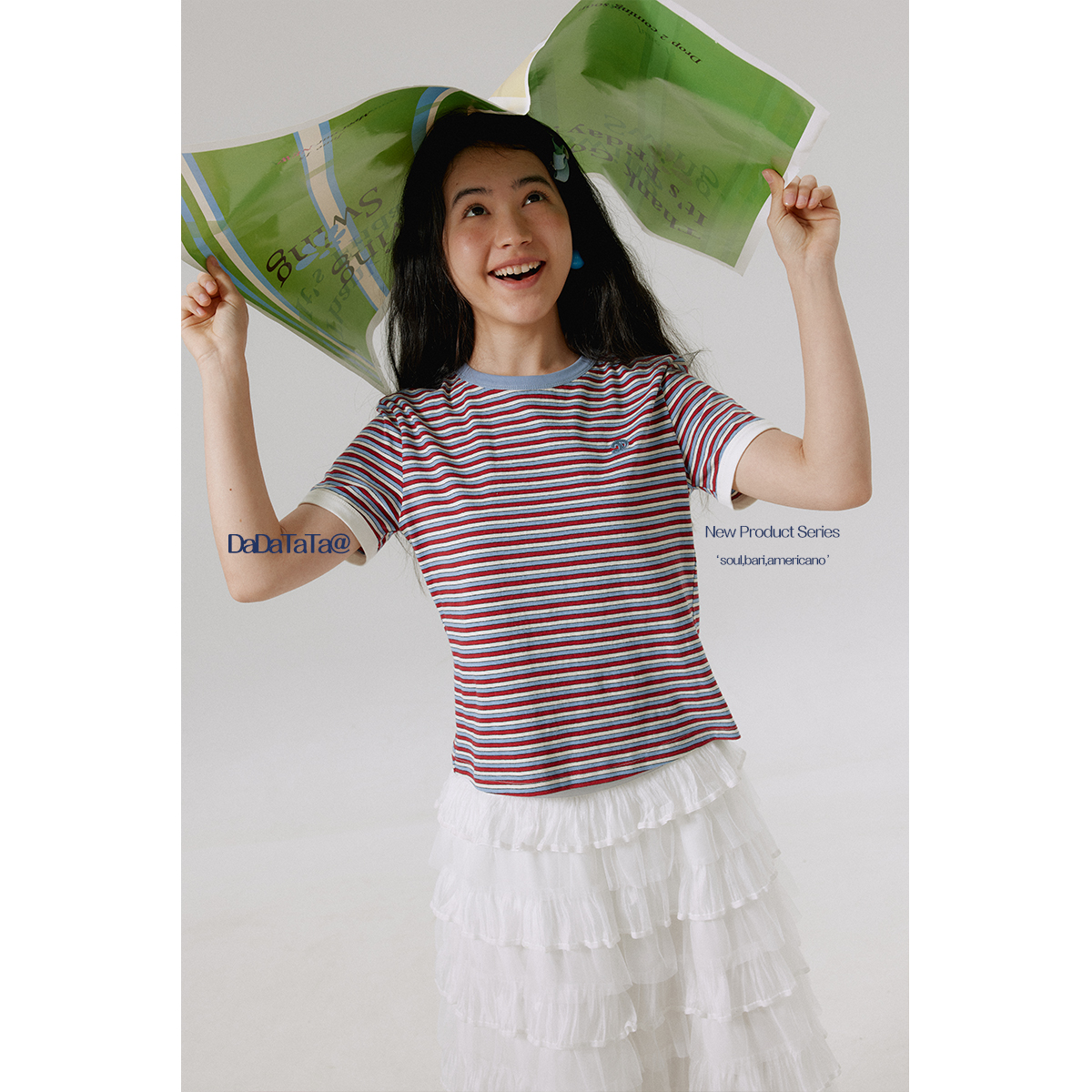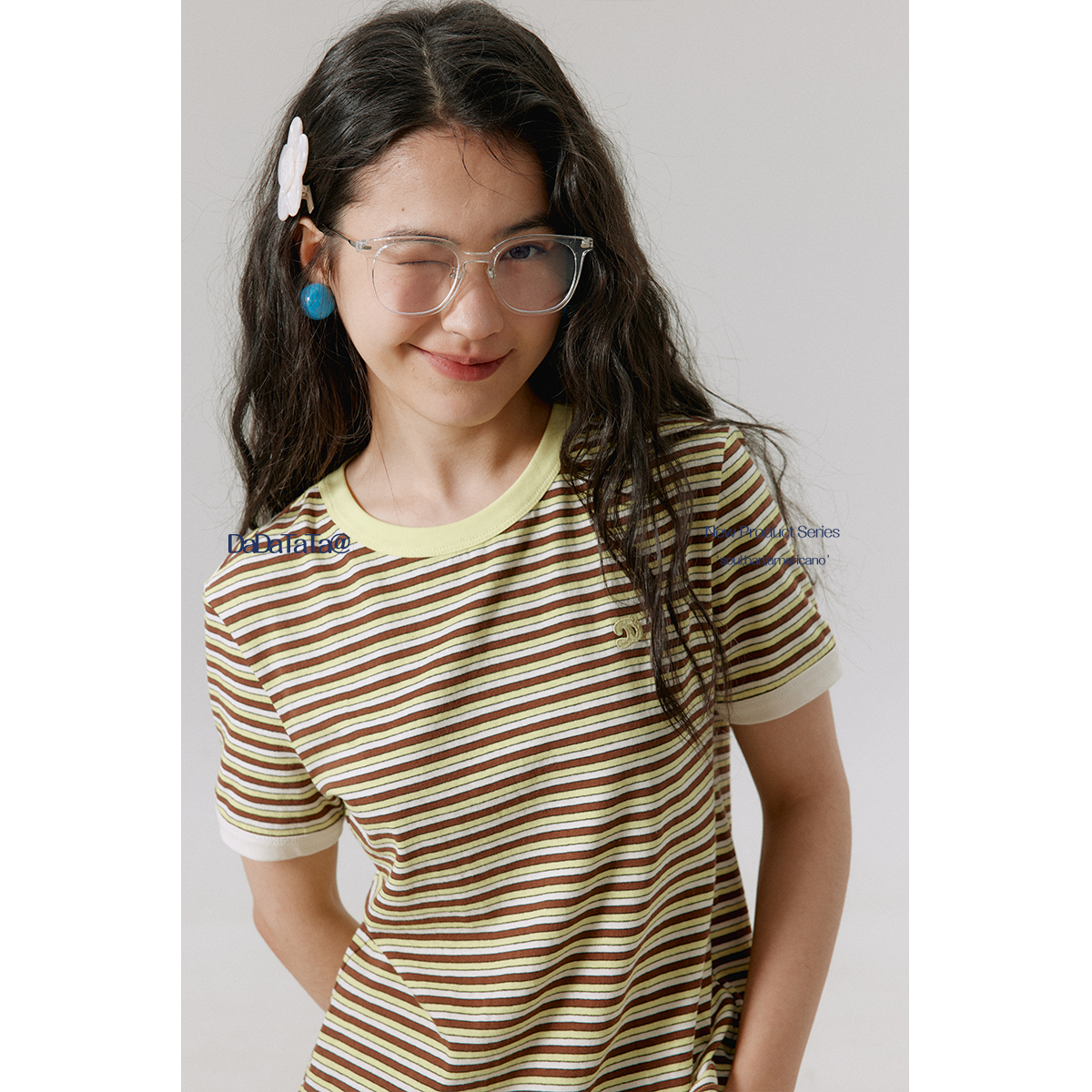 晶咕白标DADATATA【条纹时代】100%棉条纹短袖T恤女简约胖mm上衣