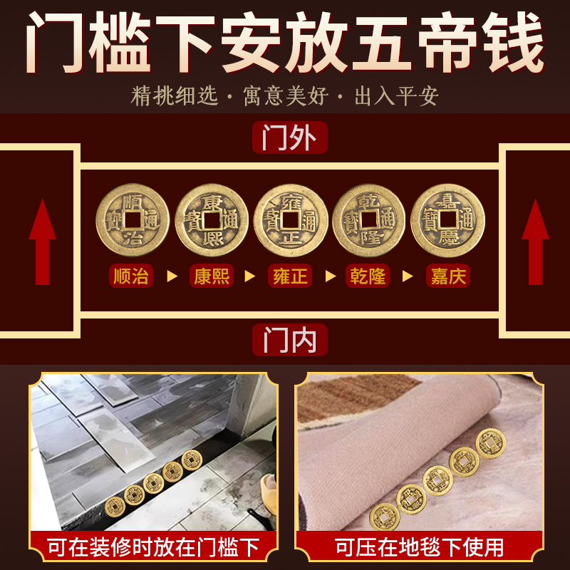 铜钱古币散钱黄铜五帝钱散钱压门槛专用顺治康雍乾加厚入户门挂件