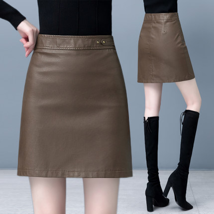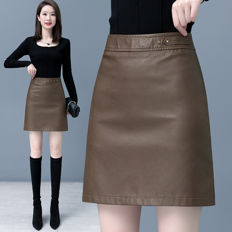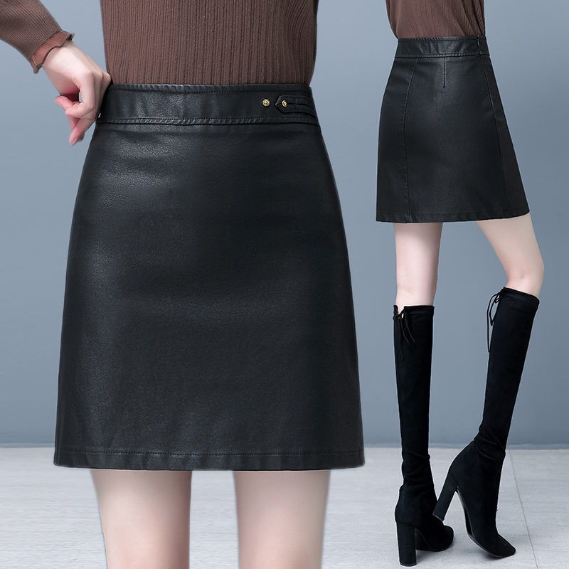 啄木鸟皮裙半身裙女秋冬高腰百搭显瘦a字包臀裙一步pu皮短裙子