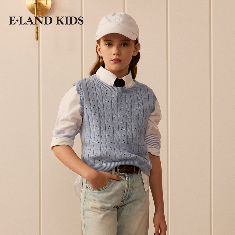 【100%棉】eland kids衣恋童装女童背心夏秋休闲圆领针织衫马甲