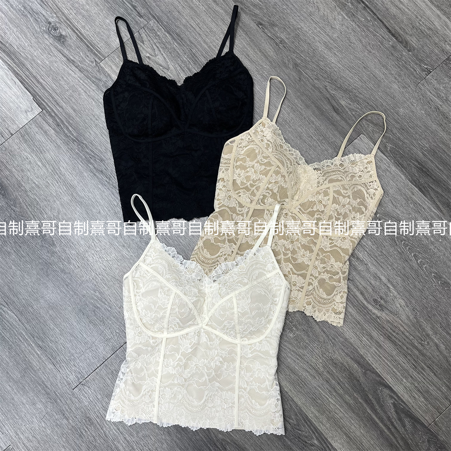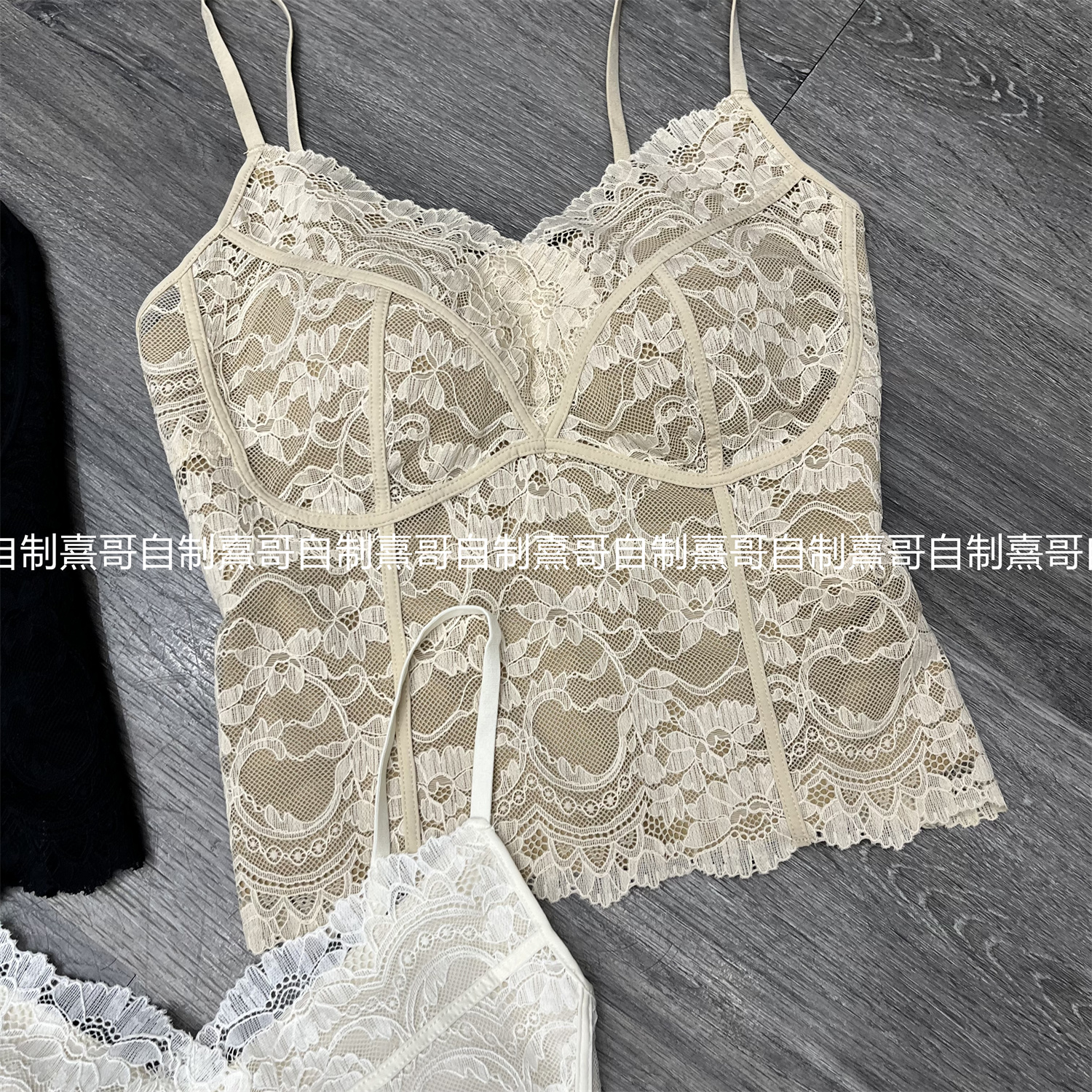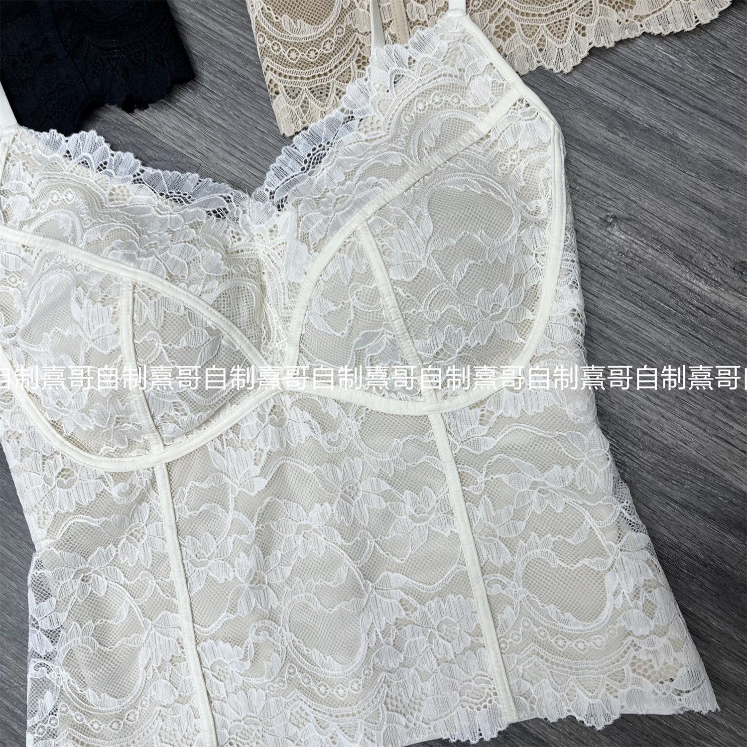 纯欲性感蕾丝美背吊带背心女带胸垫V领鱼骨上衣抹胸西装内搭外穿