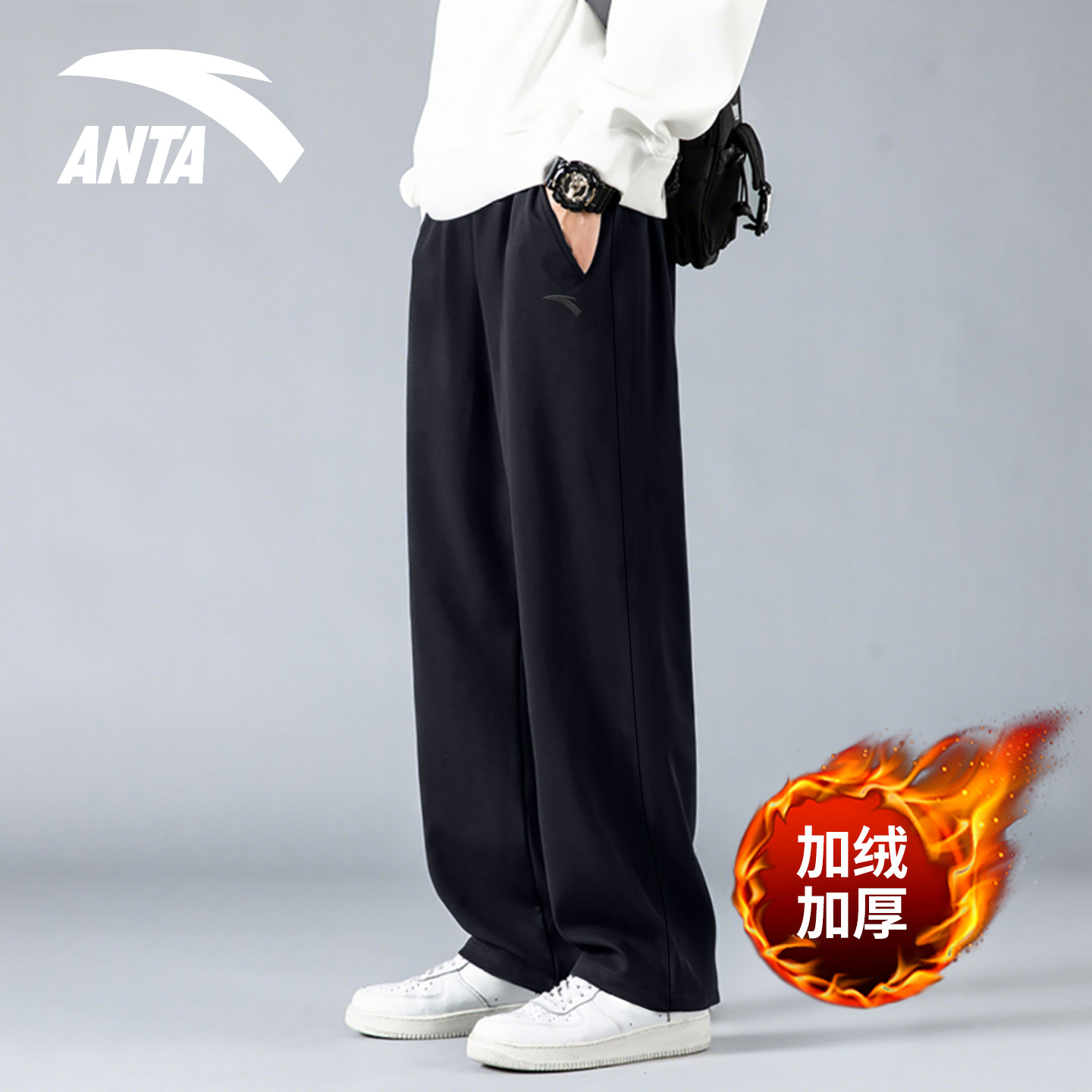 安踏加绒裤子男款运动裤冬季加厚保暖卫裤宽松大码长裤灰色直筒裤