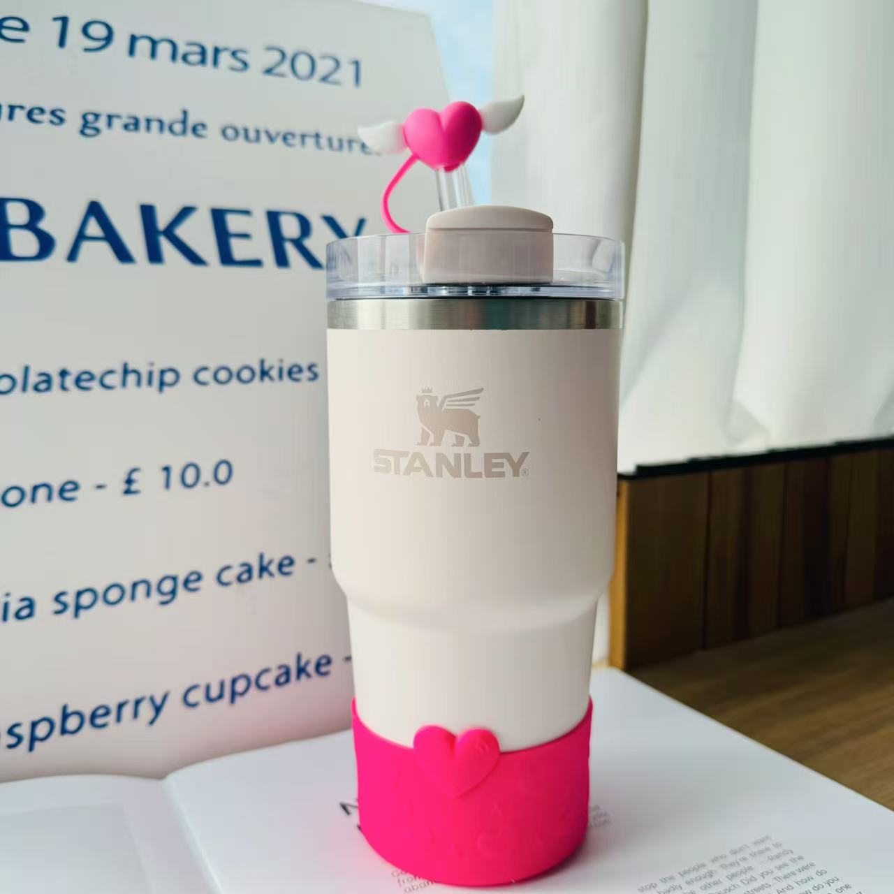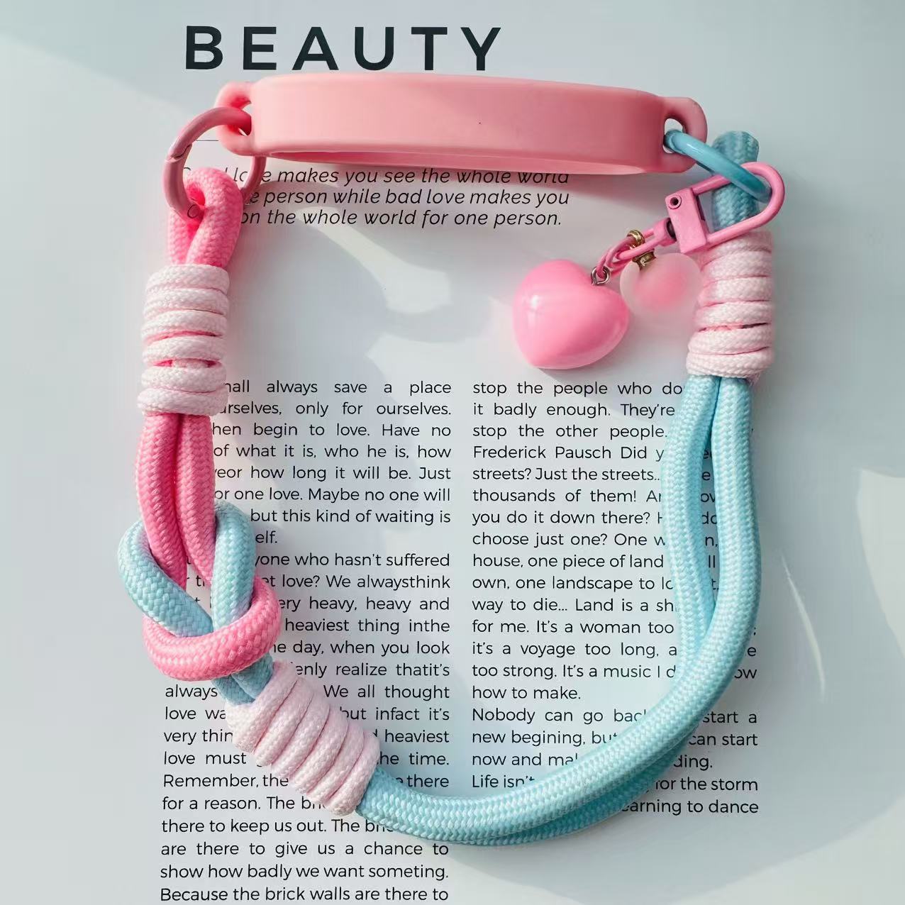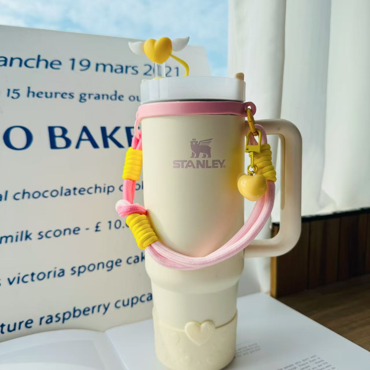 适用于Stanley吸管杯粉蓝编织爱心便携手提挂绳水杯杯套手腕绳