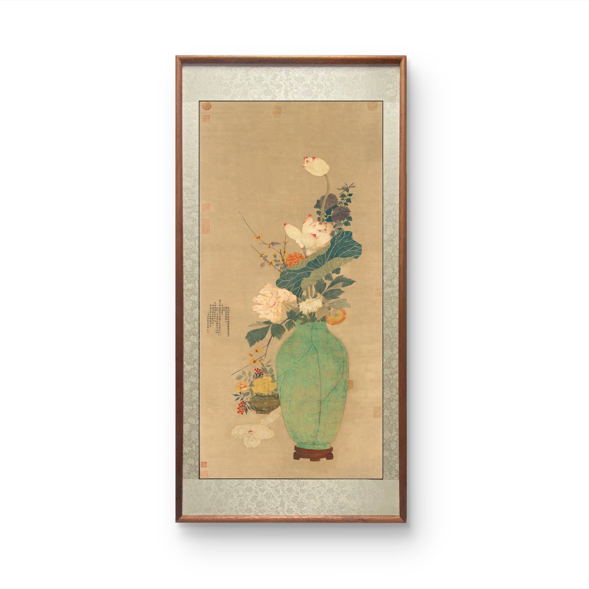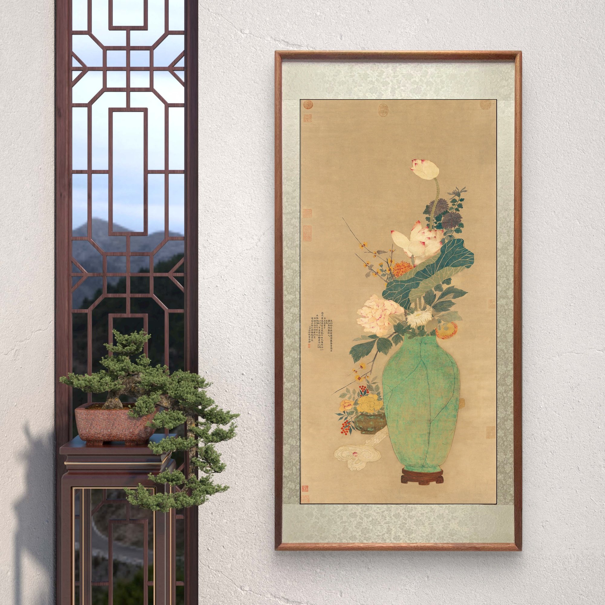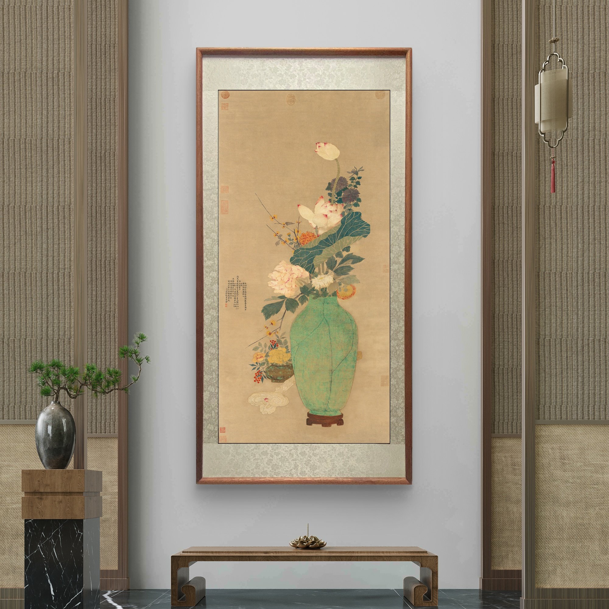 (平安如意图)玄关装饰新中式走廊挂画入户壁画竖版花卉名人国画