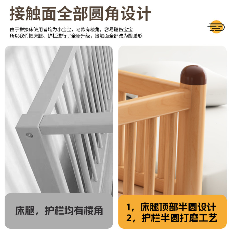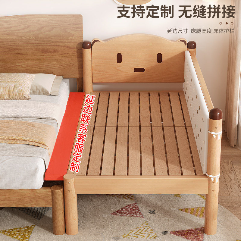榉木儿童拼接床男孩婴儿床小床带护栏女孩卡通公主床大床加宽神器