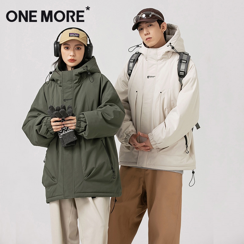 one more连帽工装棉服女2025新款冬季情侣款防泼水加厚防风外套S