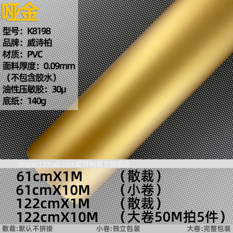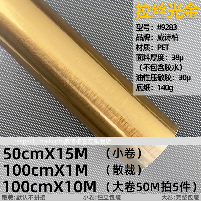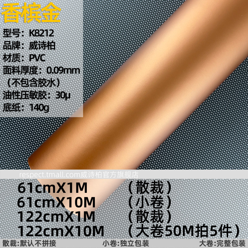 威诗柏光金贴纸珠光防水户外装饰自粘玫瑰香槟金磨砂哑金汽车贴膜