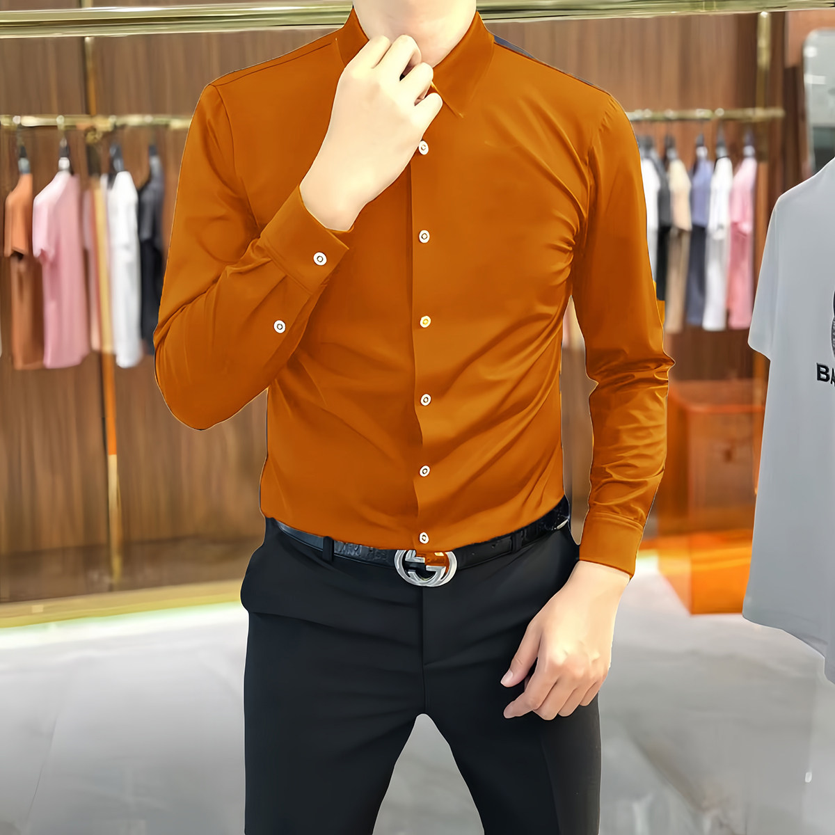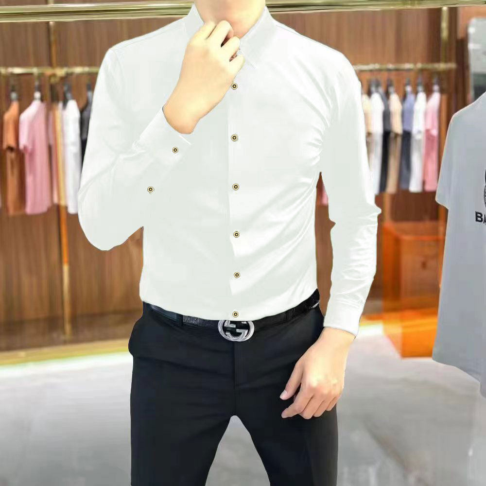 新品垂感无痕衬衫男士长袖修身弹力冰丝抗皱商务痞帅红色时尚衬衣