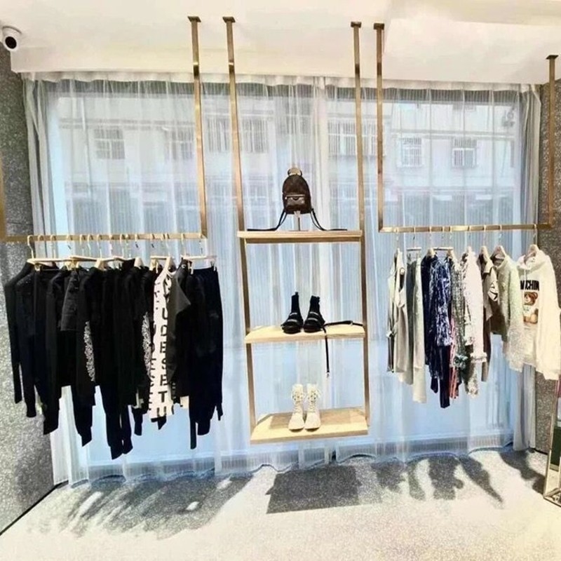 不锈钢婚纱展示架服装店上墙吊挂钛金拉丝吊顶礼服悬挂吊架定制