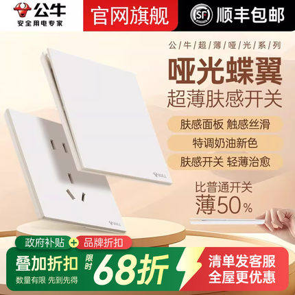 公牛G57超薄肤感开关插座面板