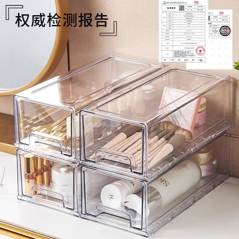 日本桌面收纳盒化妆品口红护肤面膜透明抽屉收纳盒办公室工位神器