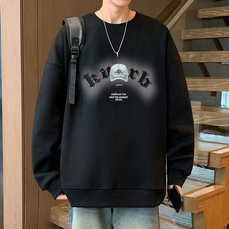 卫衣男春秋季2025新款休闲无帽打底潮牌宽松上衣美式大码男生外套