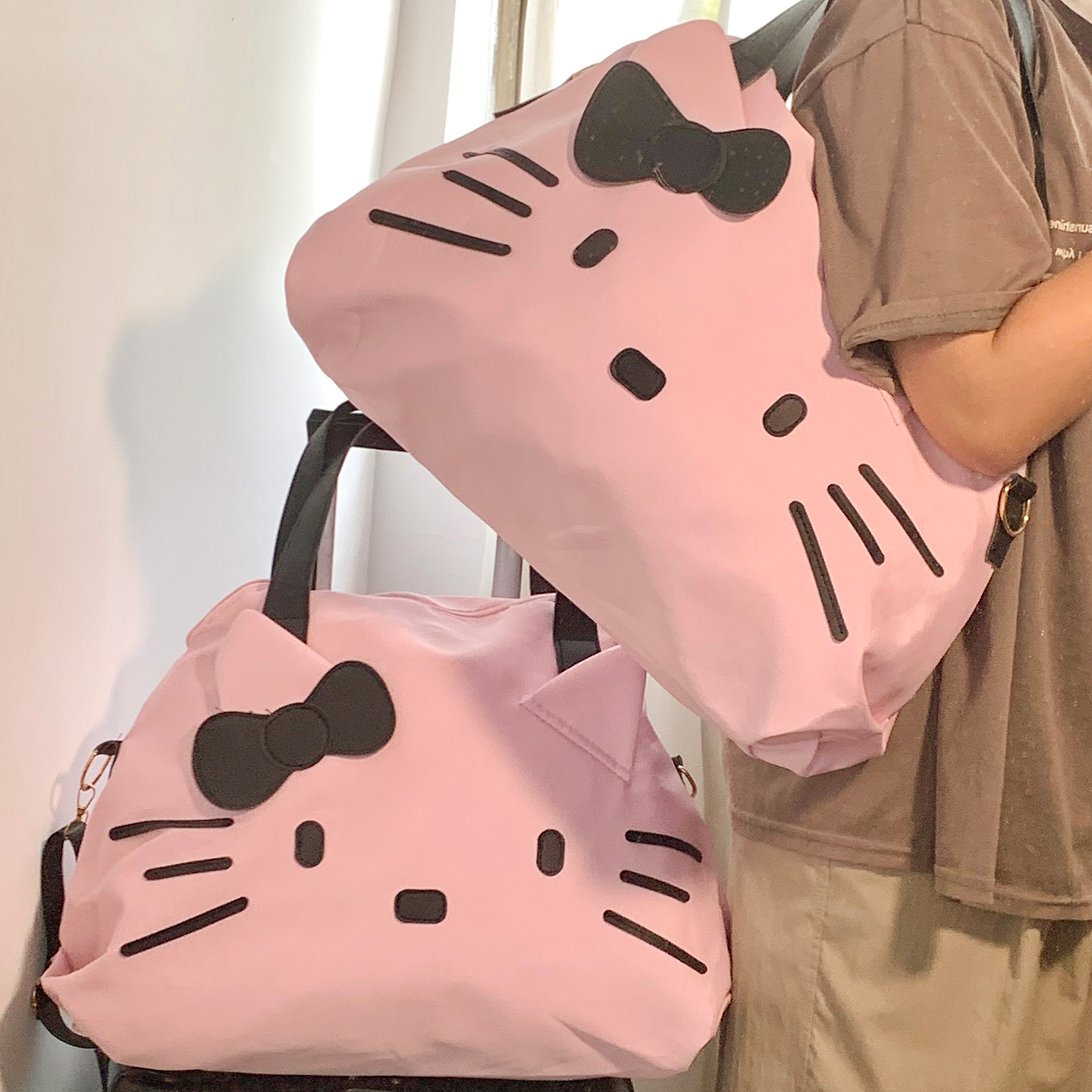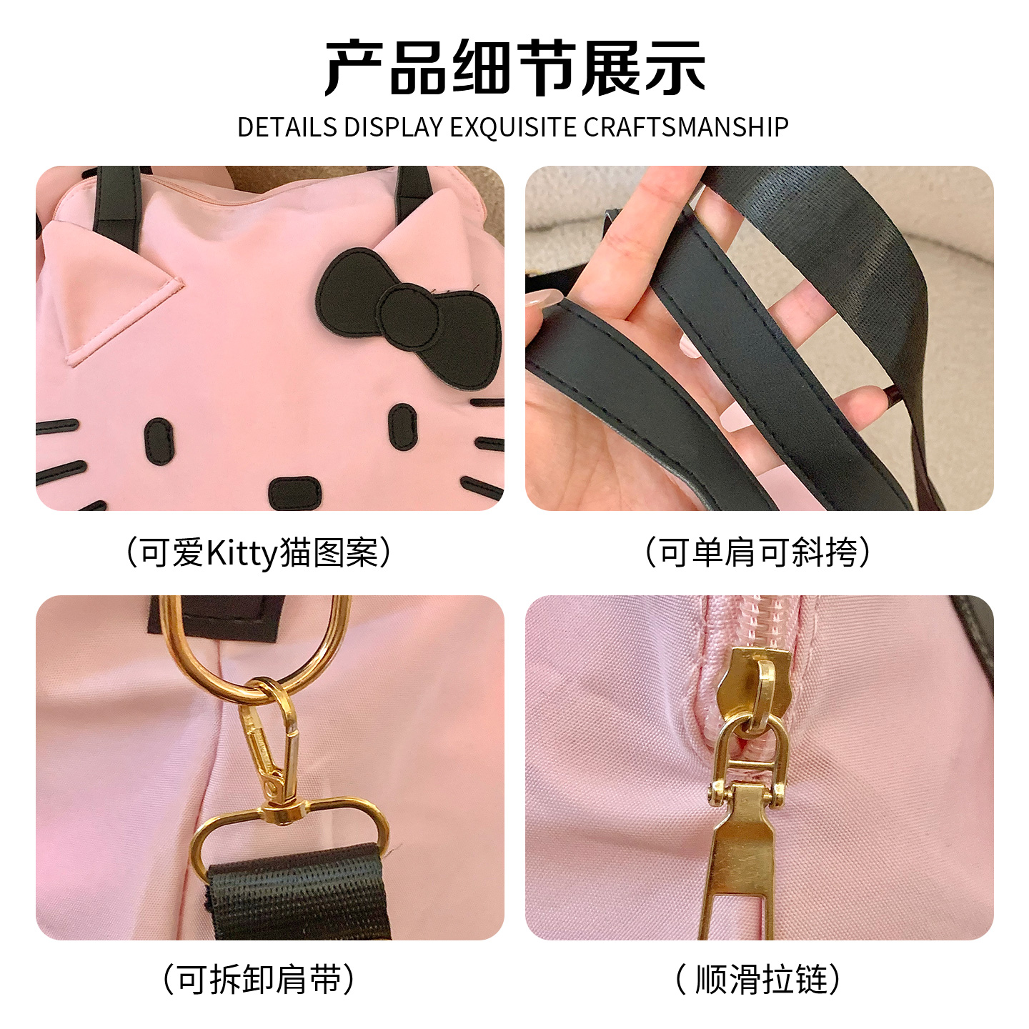 可爱Kitty猫旅行收纳袋女便携大容量手提单肩包可挂行李箱托特包