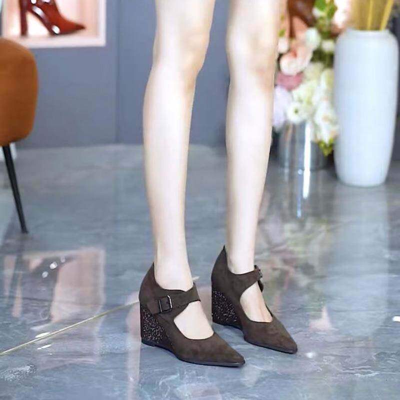 韩版百搭坡跟8cm高跟鞋女单鞋子