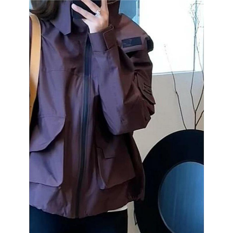 新款2025秋季韩系独特超好看又酷又飒的短款紫色连帽夹克外套女装