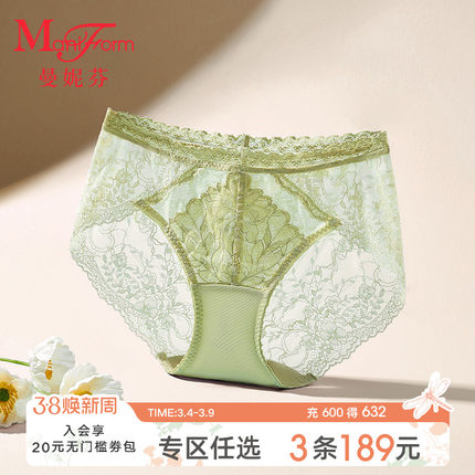 曼妮芬性感蕾丝女内裤幸运红色低腰三角裤舒适底裤抗菌纯棉裆短裤