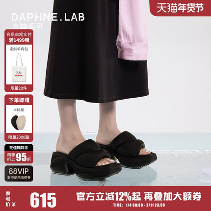 DAPHNE LAB方糖厚底拖鞋高跟鞋方头一字拖鞋舒适透气增高显小女鞋