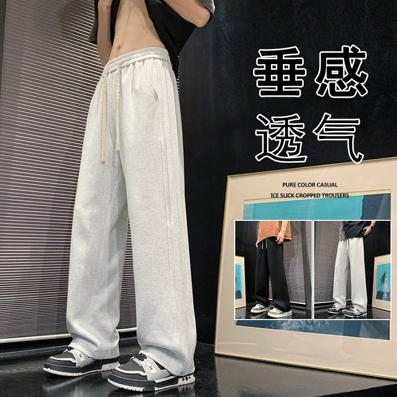 裤子男薄款秋冬季休闲宽松直筒透气美式潮流拖地男生阔腿运动长裤