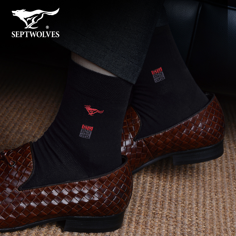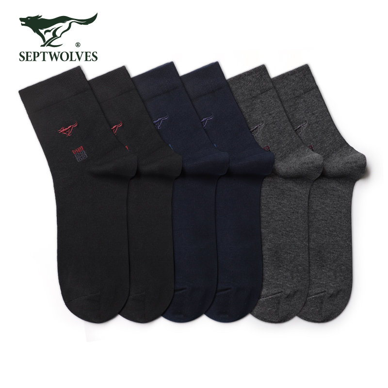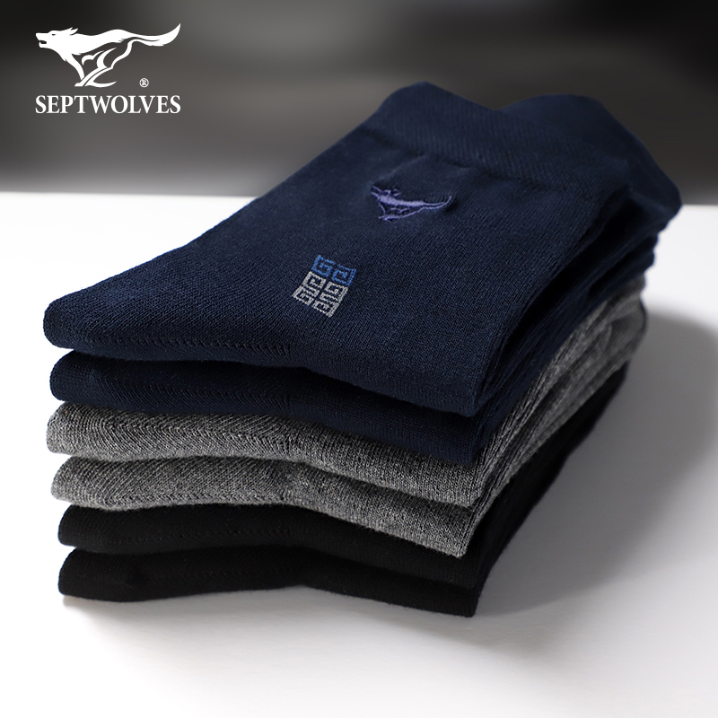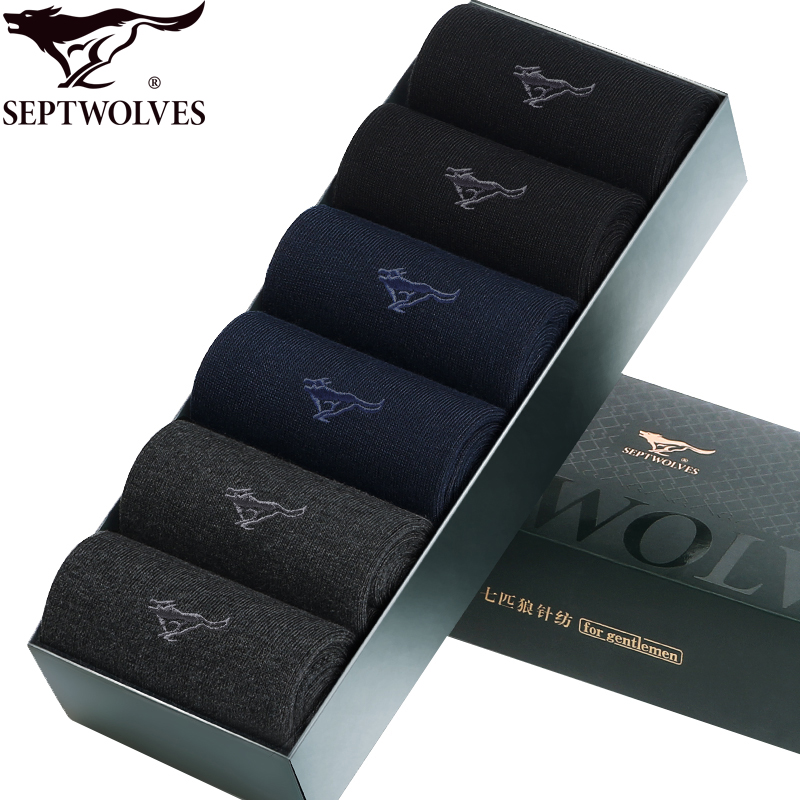 6双盒装七匹狼纯棉男士袜子中筒男袜全棉弹力防臭袜吸湿排汗透气