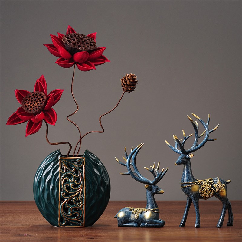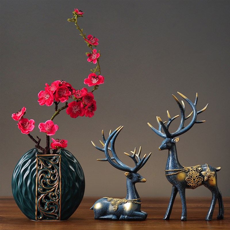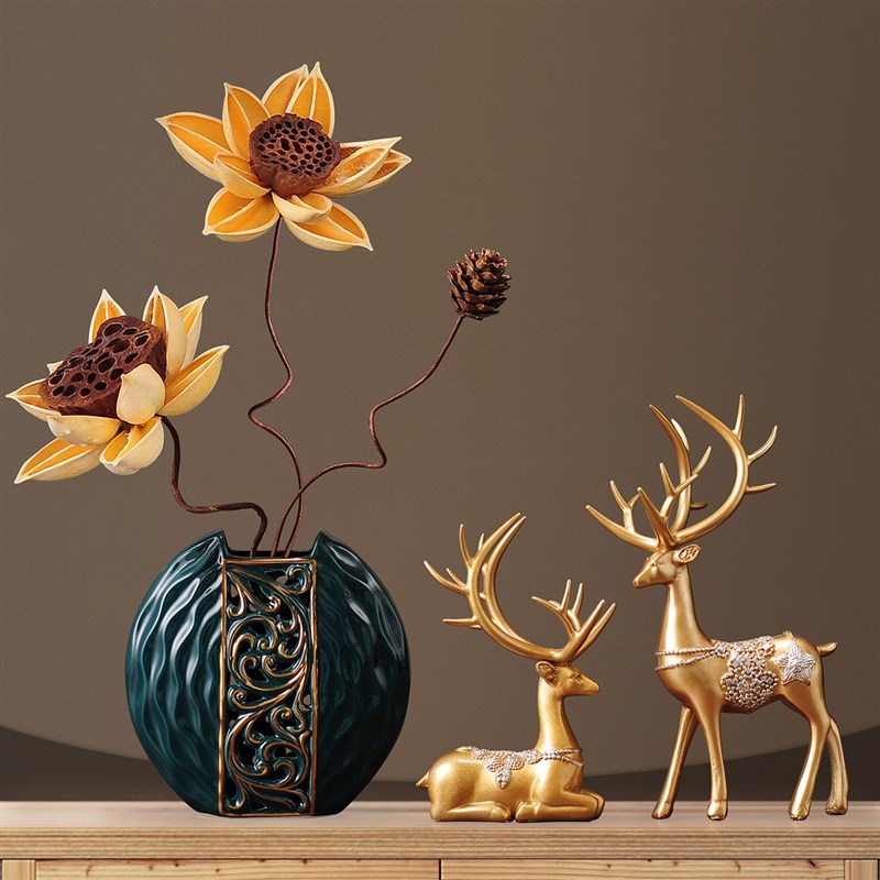 中式价鹿花瓶套装家居摆件客厅玄关柜台装饰摆设乔迁新居