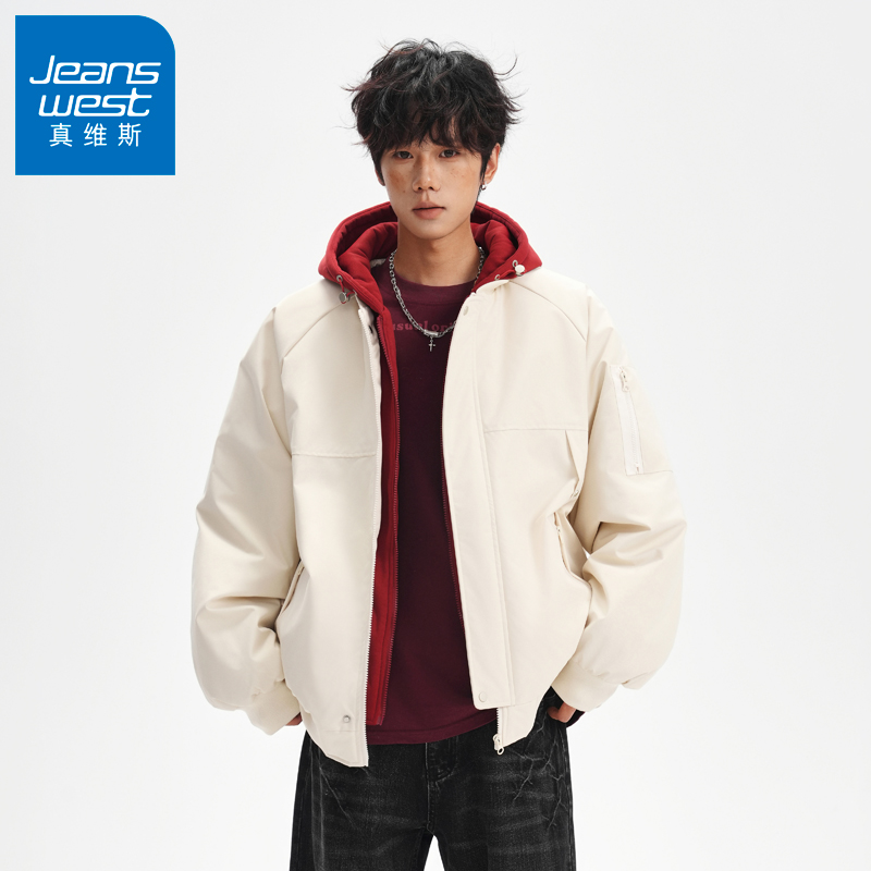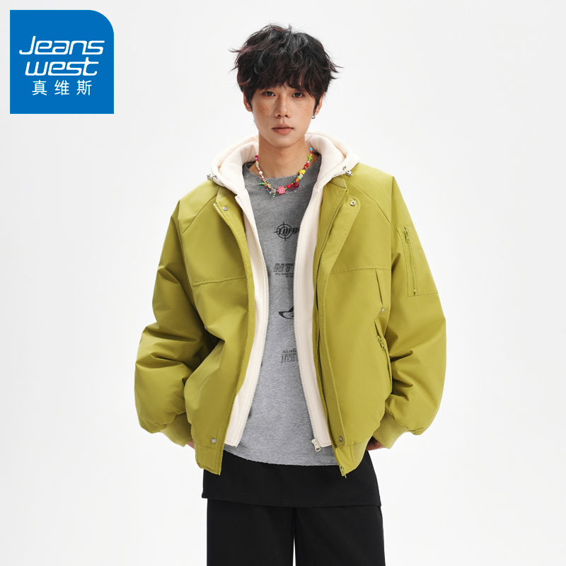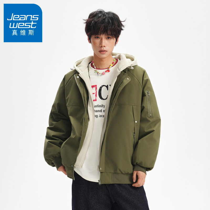 N5真维斯棉服男款2025新款冬季假两件连帽厚棉袄男装棉衣冬装外套