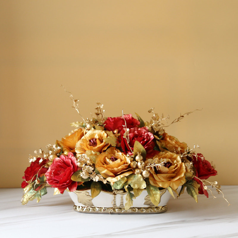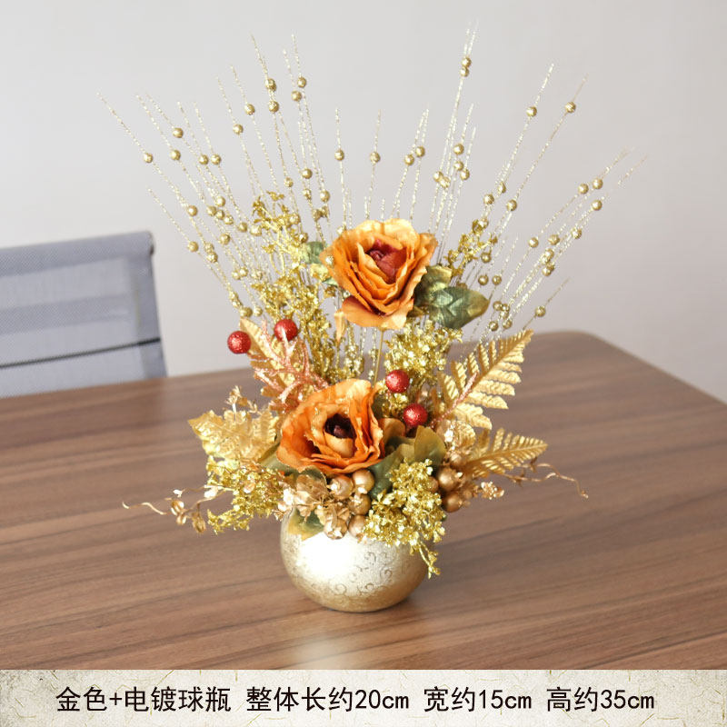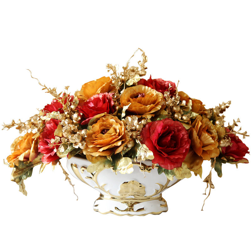 客厅仿真花套装假花装饰绢花玫瑰餐桌摆件盆栽欧式花瓶插花艺摆设