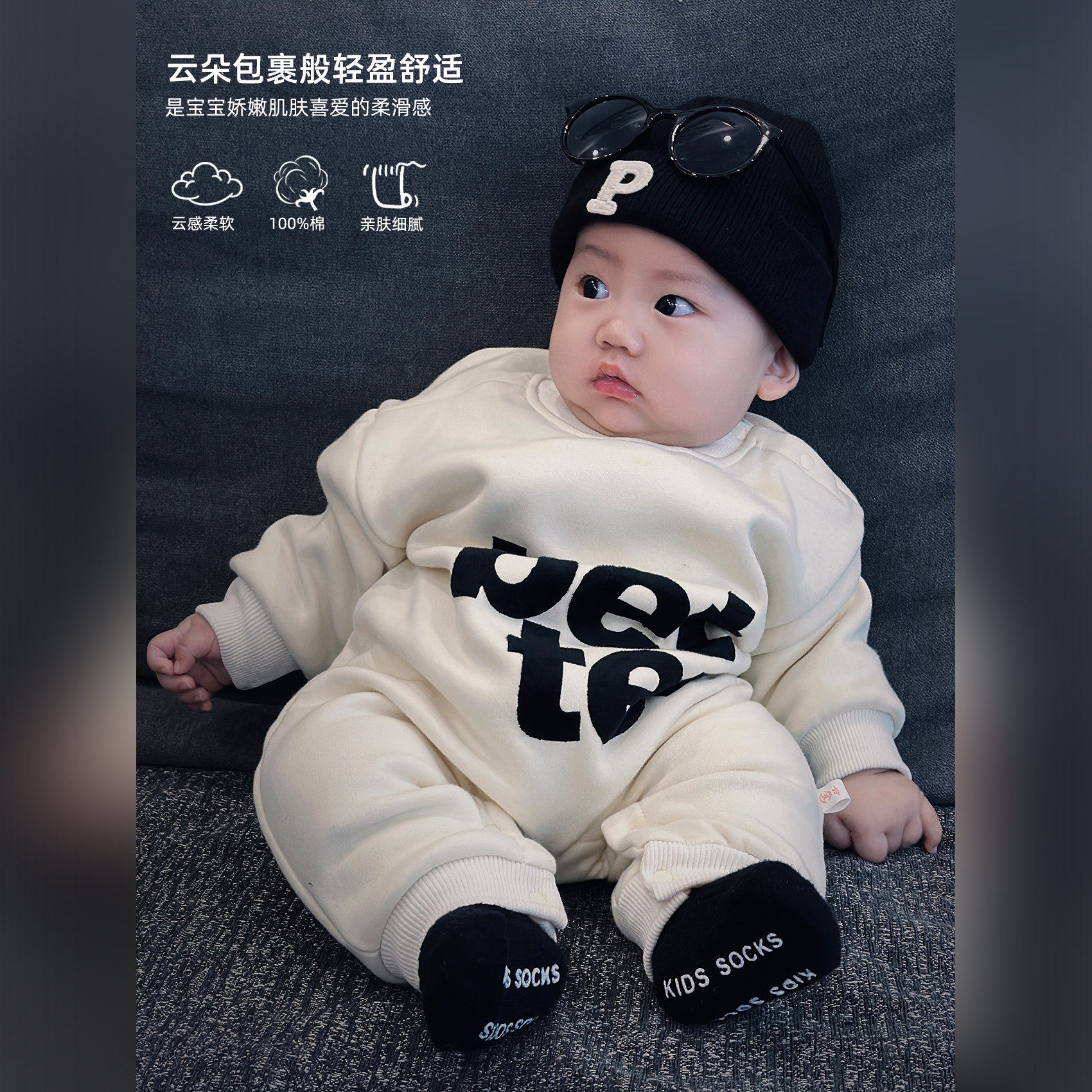 婴儿连体衣加绒新款新生儿冬季一体绒卫衣宝宝加厚保暖外出爬爬服