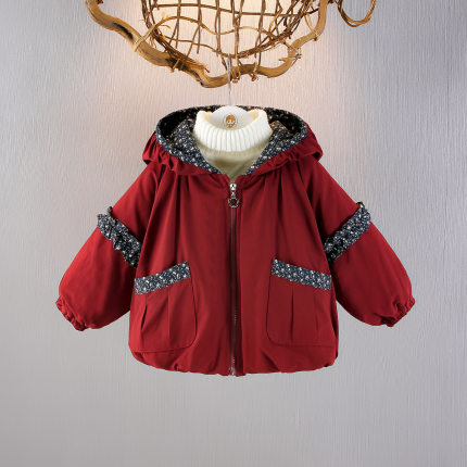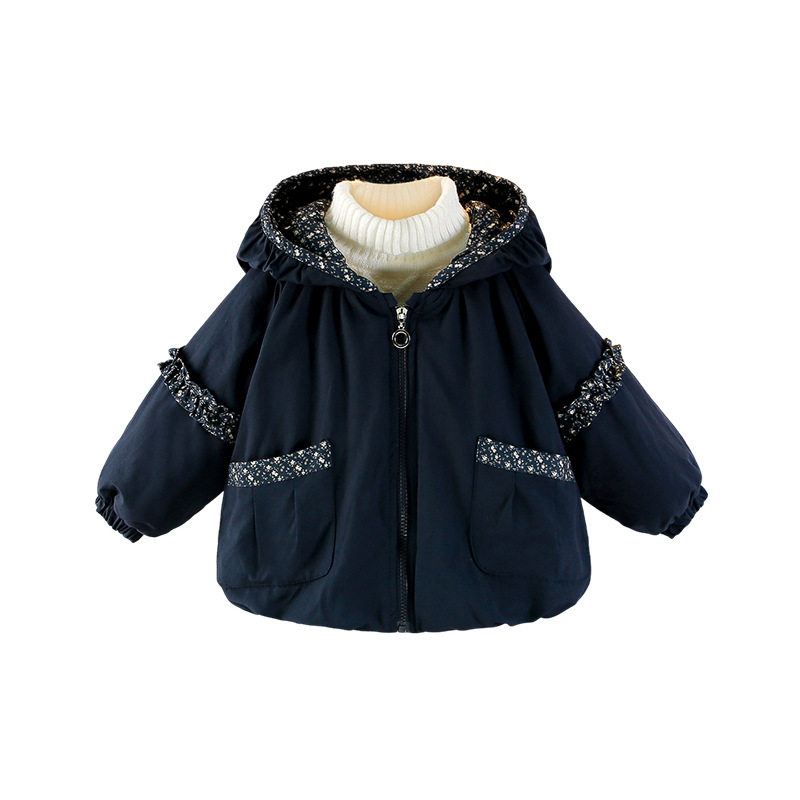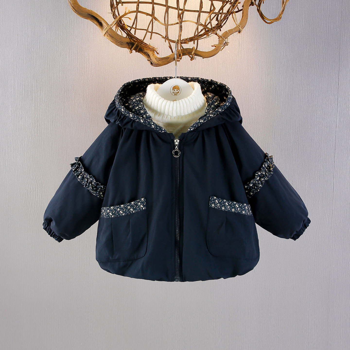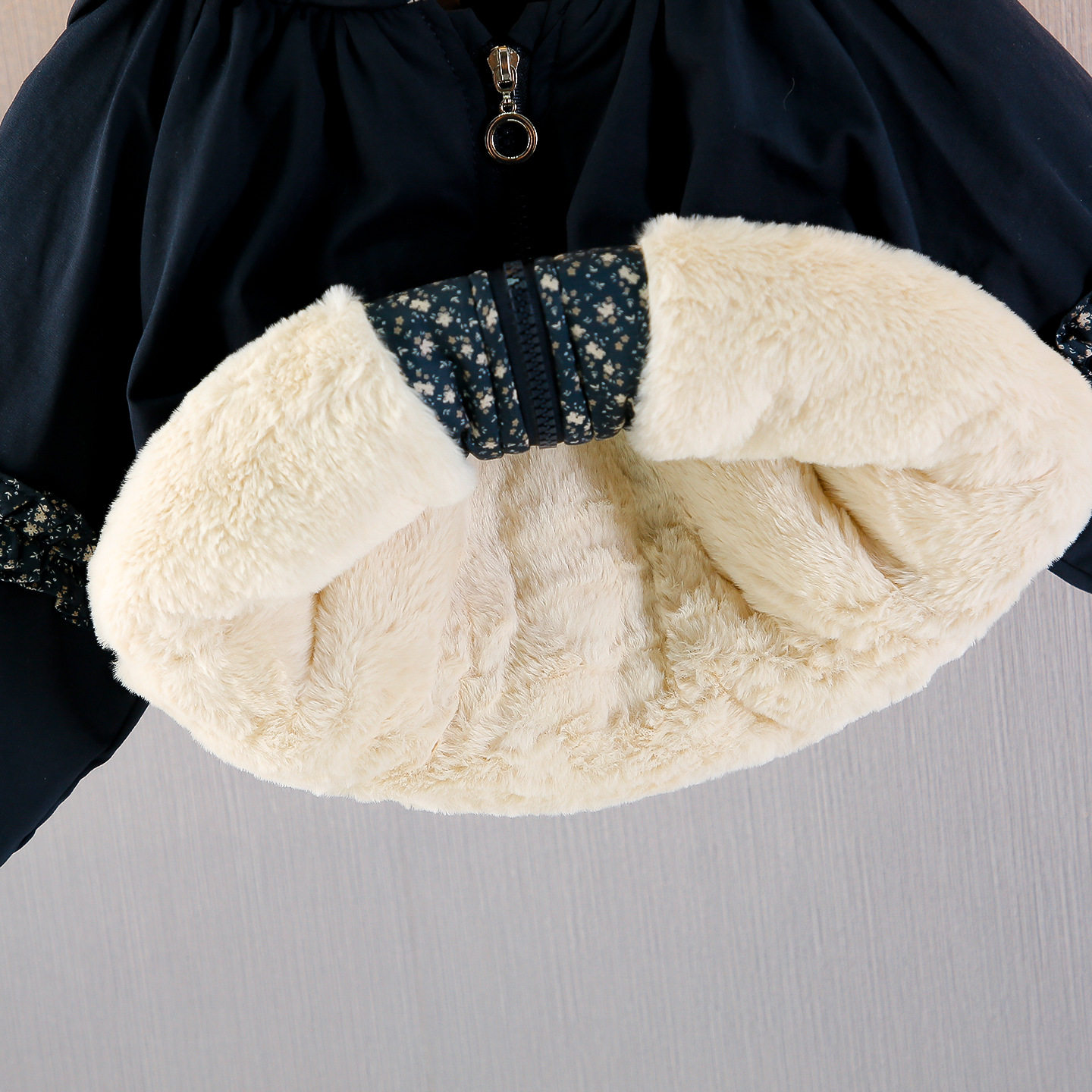 女宝宝加绒加厚冬装时髦带帽保暖棉衣冬季女童洋气小棉袄童外出服
