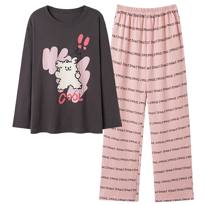 猫人睡衣情侣春秋款2025新款纯棉长袖秋季卡通线条小狗青少年套装