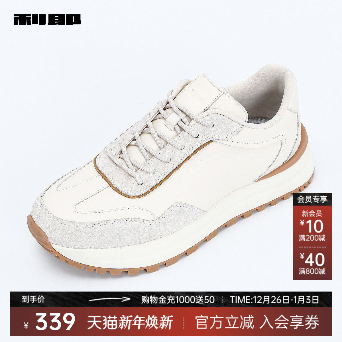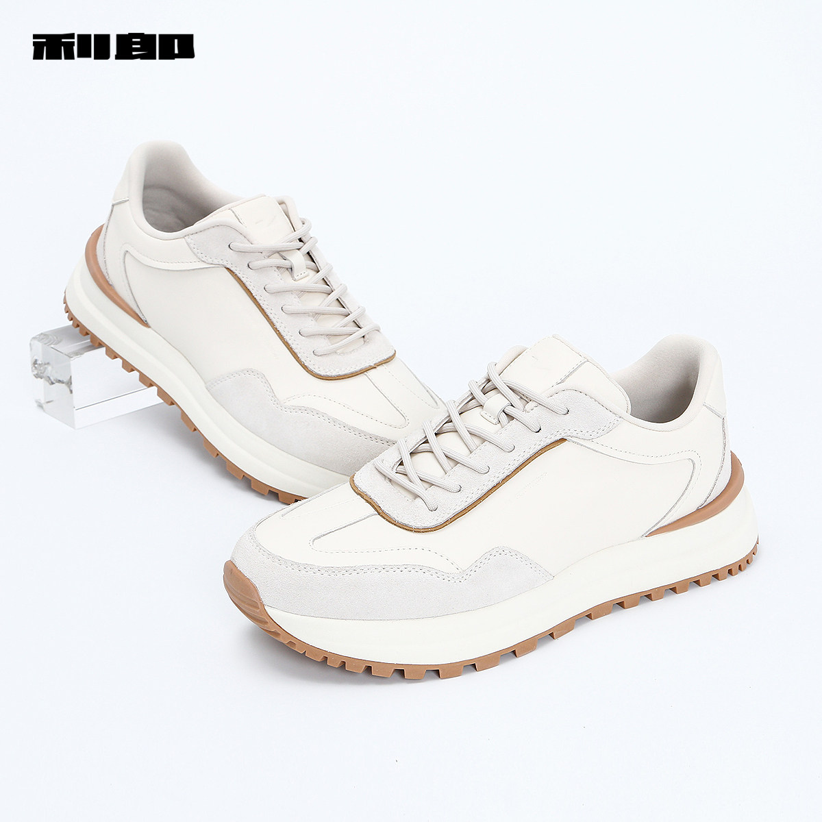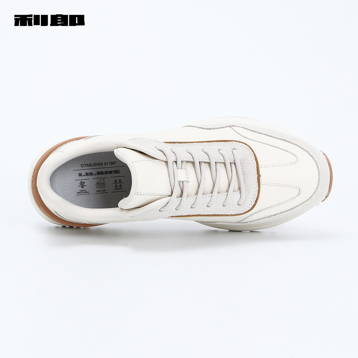 利郎官方 牛皮革运动休闲鞋男士潮流拼接2025新款系带低帮鞋子男