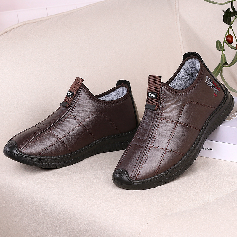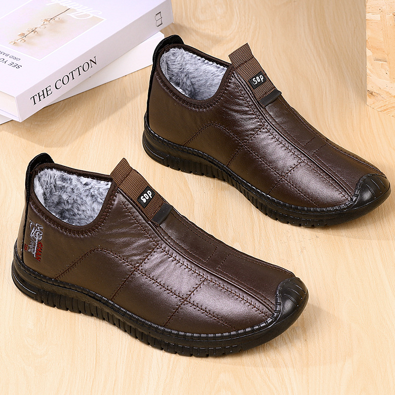 冬季老北京布鞋男一脚蹬中老年爸爸棉鞋加绒加厚保暖休闲健步棉靴