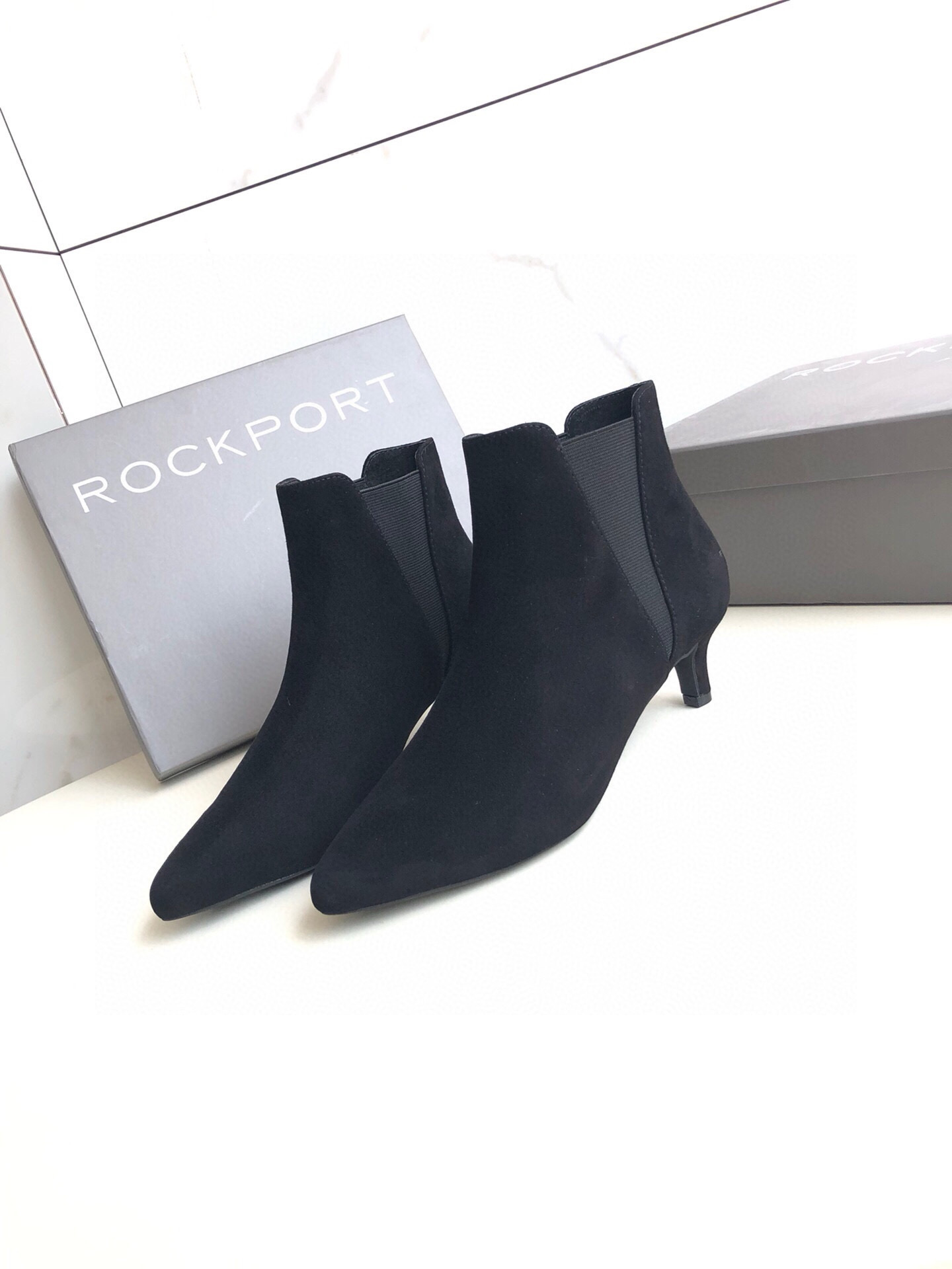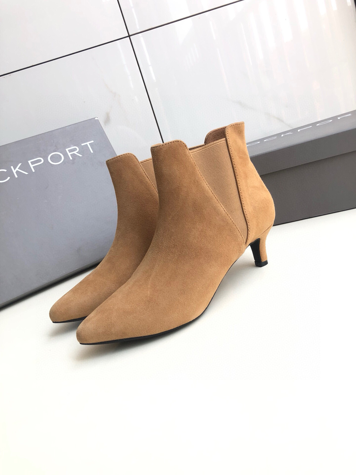 面头层牛皮里羊皮外贸女裸靴短筒靴V口松紧带细跟尖头时装靴欧美