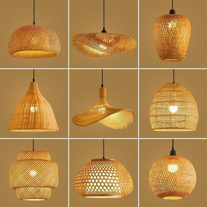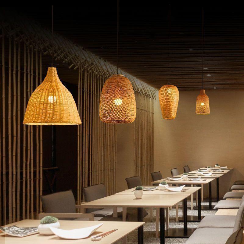竹编吊灯竹艺茶室中式餐厅民宿餐饮店灯笼藤编灯复古编织吊灯