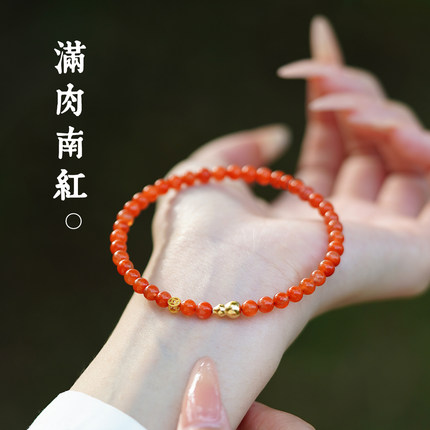 南红手串女天然云南保山红玛瑙手链本命年锦红色宝石小米珠收藏级