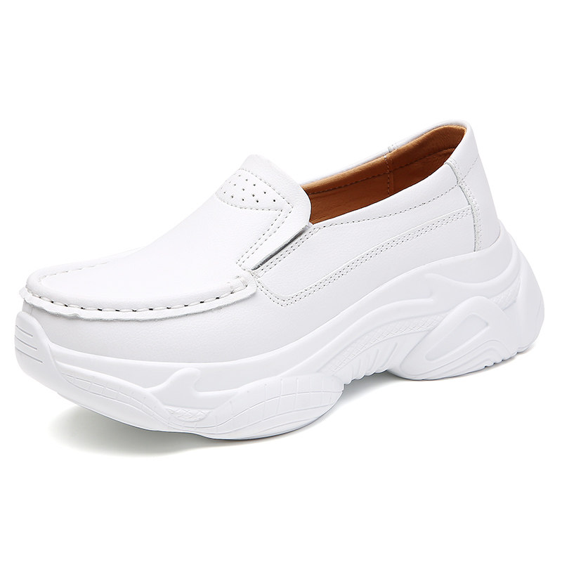 真皮2024春季新款舒适厚底运动休闲鞋单鞋软底一脚蹬妈妈鞋护士鞋